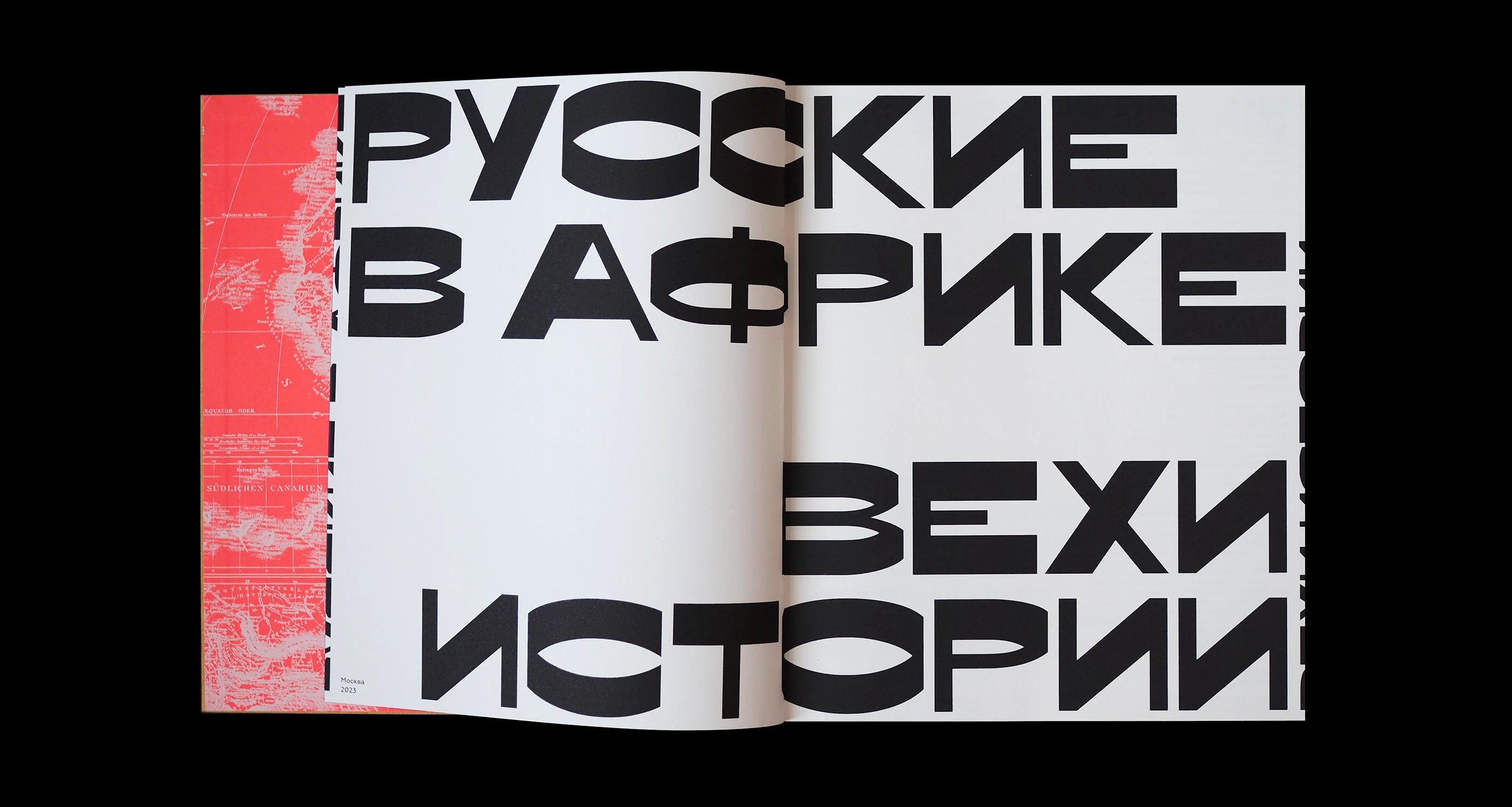 Русские в Африке (“Russians in Africa”) is a book that explores — through art, poetry, and philosophy — how Soviet Russia of the mid-20th century tried to understand the culture of African countries. The book, published in 2023 by ABCDesign, was designed by Katya Yumasheva. The typography in the publication is executed using CSTM Xprmntl 02Bold by CSTM Fonts and Geometria by Brownfox.