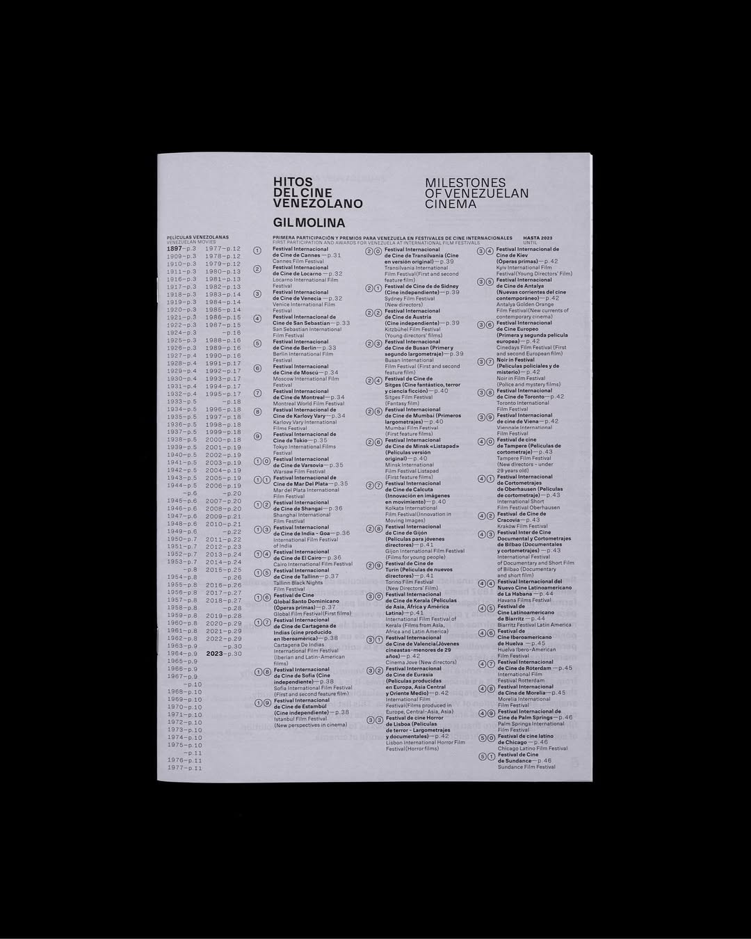 Hitos del cine venezolano is an editorial and exhibition project by journalist and researcher Gil Molina. It is an unprecedented work within its genre, both in Venezuela and across Latin America, tracing 125 years of history through its most significant milestones.
