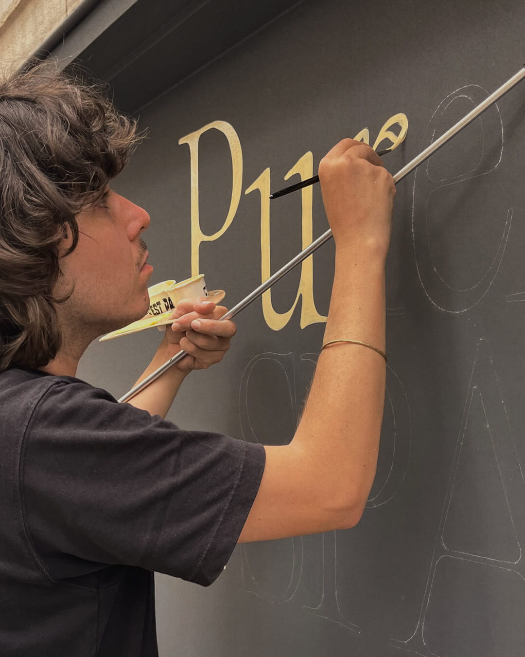 Beyond the logo, the collaboration included full artistic direction: creating a wood-engraved icon system for signage, defining the editorial tone, designing both physical and digital atmospheres, and conceiving the storefront adorned with hand-painted letters by C’est par là.