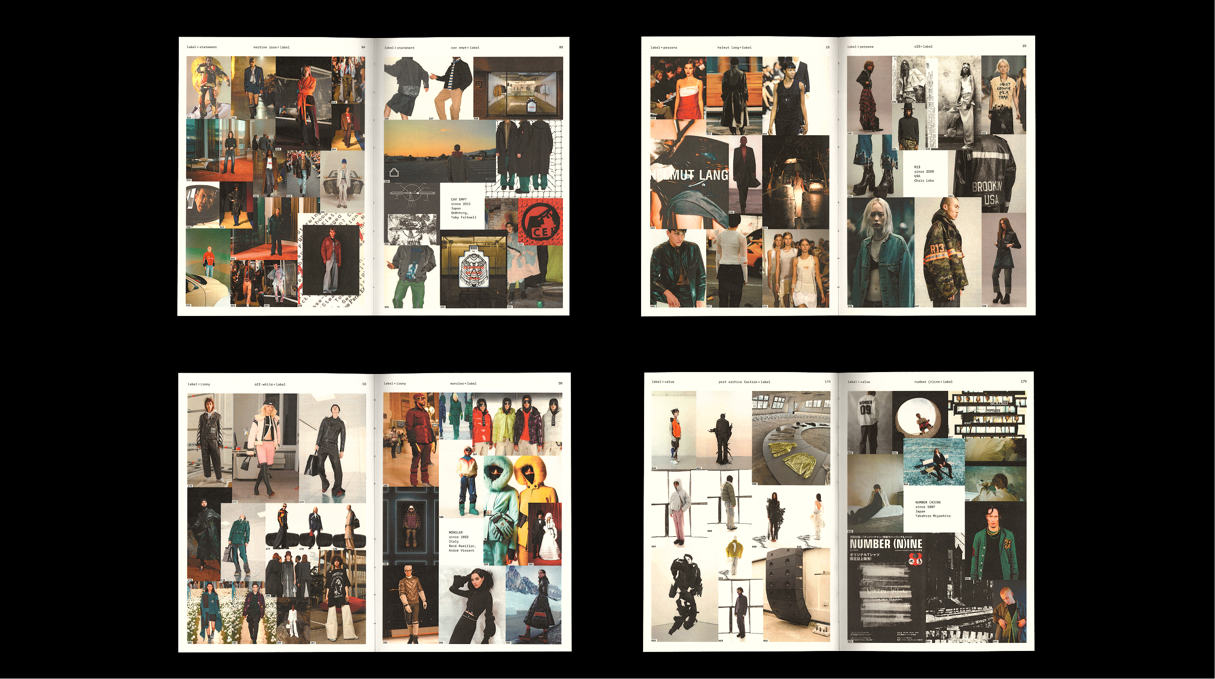 label=label is a visual study made at HSE Art and Design School in Saint Petersburg. In it, I’ve examined clothing labels as a medium for brand-consumer interaction. As a detail that is not always immediately visible, a label can act as an intermediary between the brand and its target audience. For this study, twenty fashion brands were selected, whose founding history spans from the mid‑20th century to the present day. The main selection criterion was their visual identity. A large number of labels were examined and analyzed in order to identify unconventional solutions in terms of design and concept.