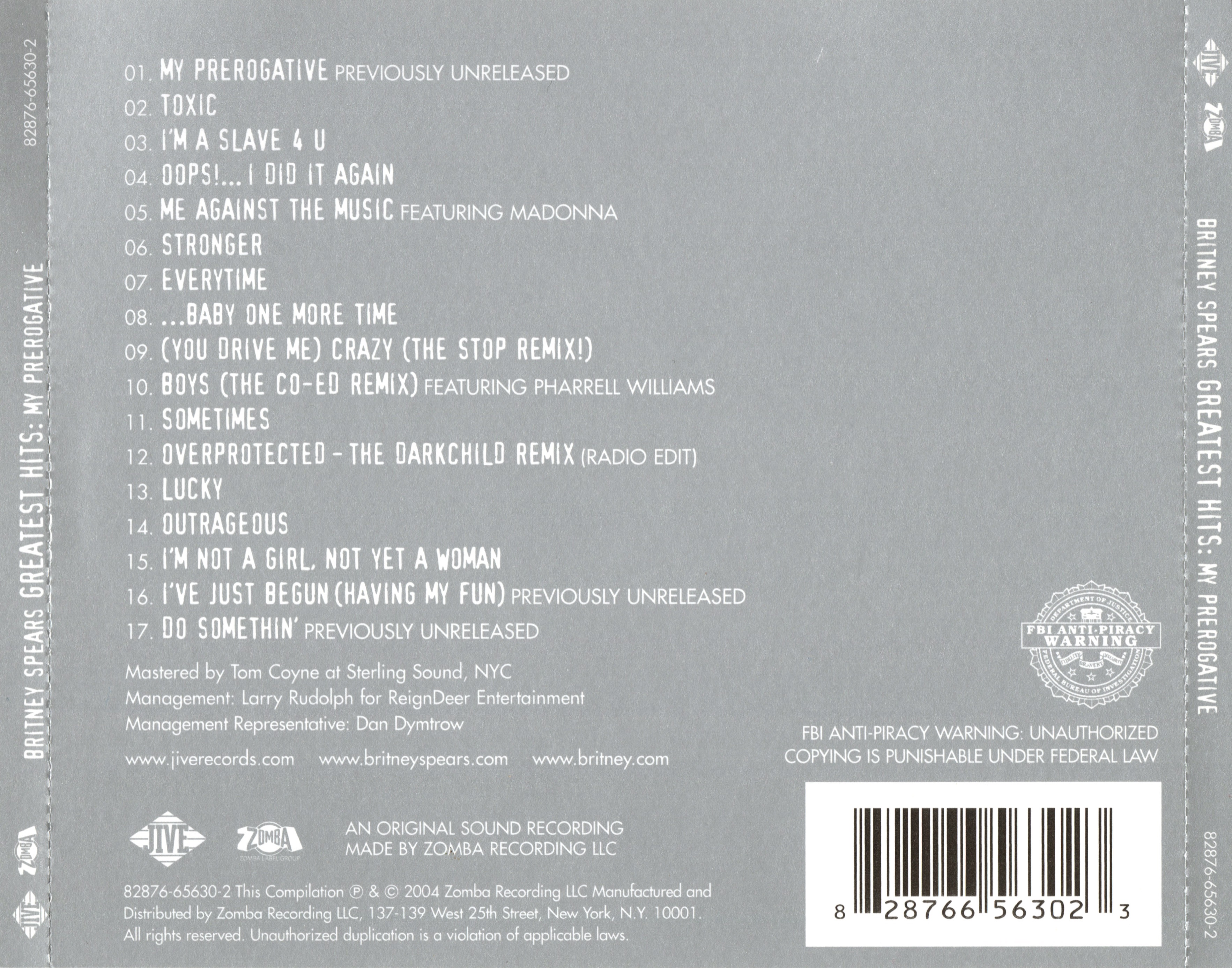 Greatest Hits: My Prerogative is a best-of compilation album by American singer Britney Spears, released on November 3, 2004, by Jive Records. The album art is credited to Jackie Murphy (art direction), Courtney Walter (art direction & design), and Matthew Rolston (cover photography).