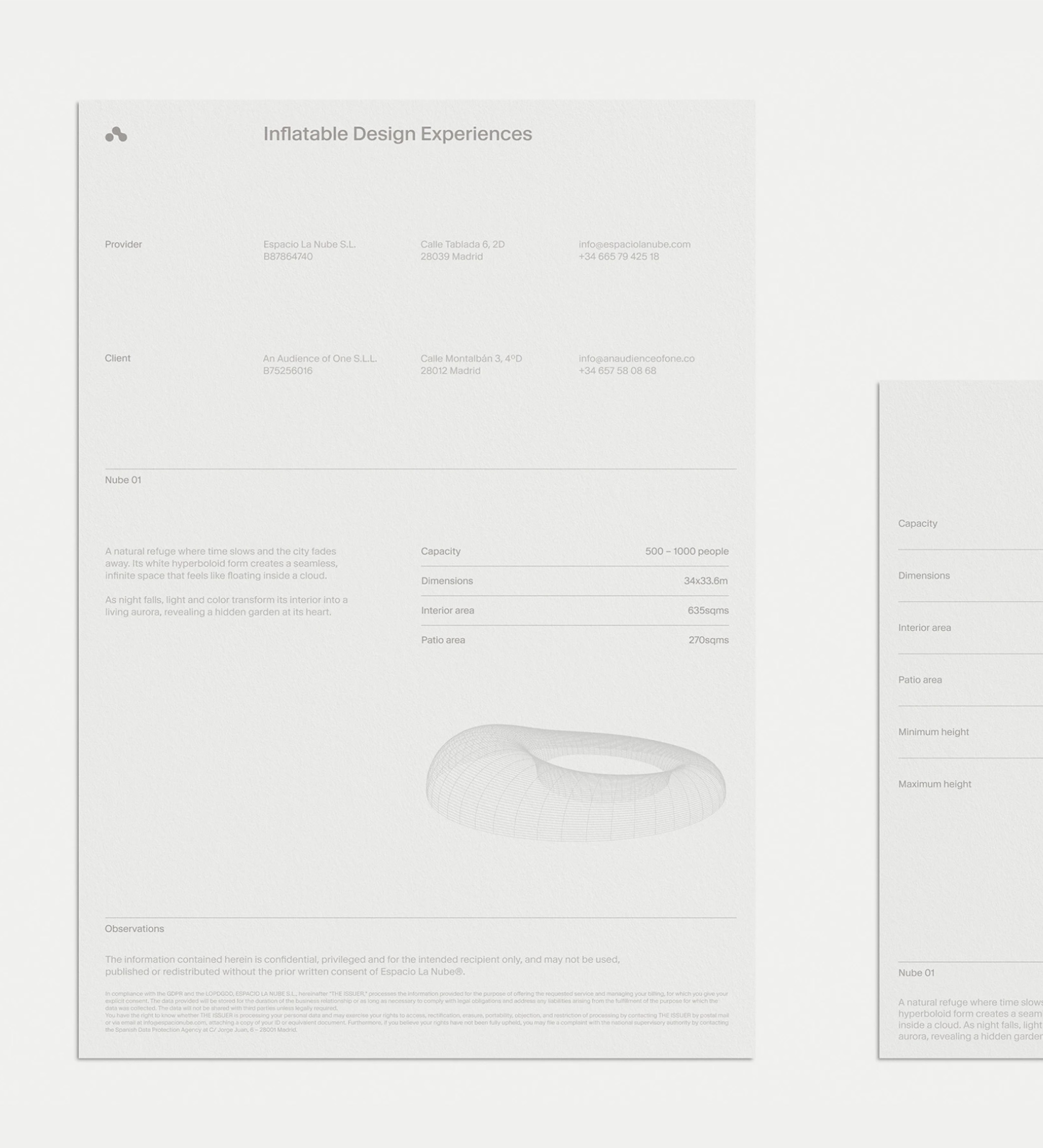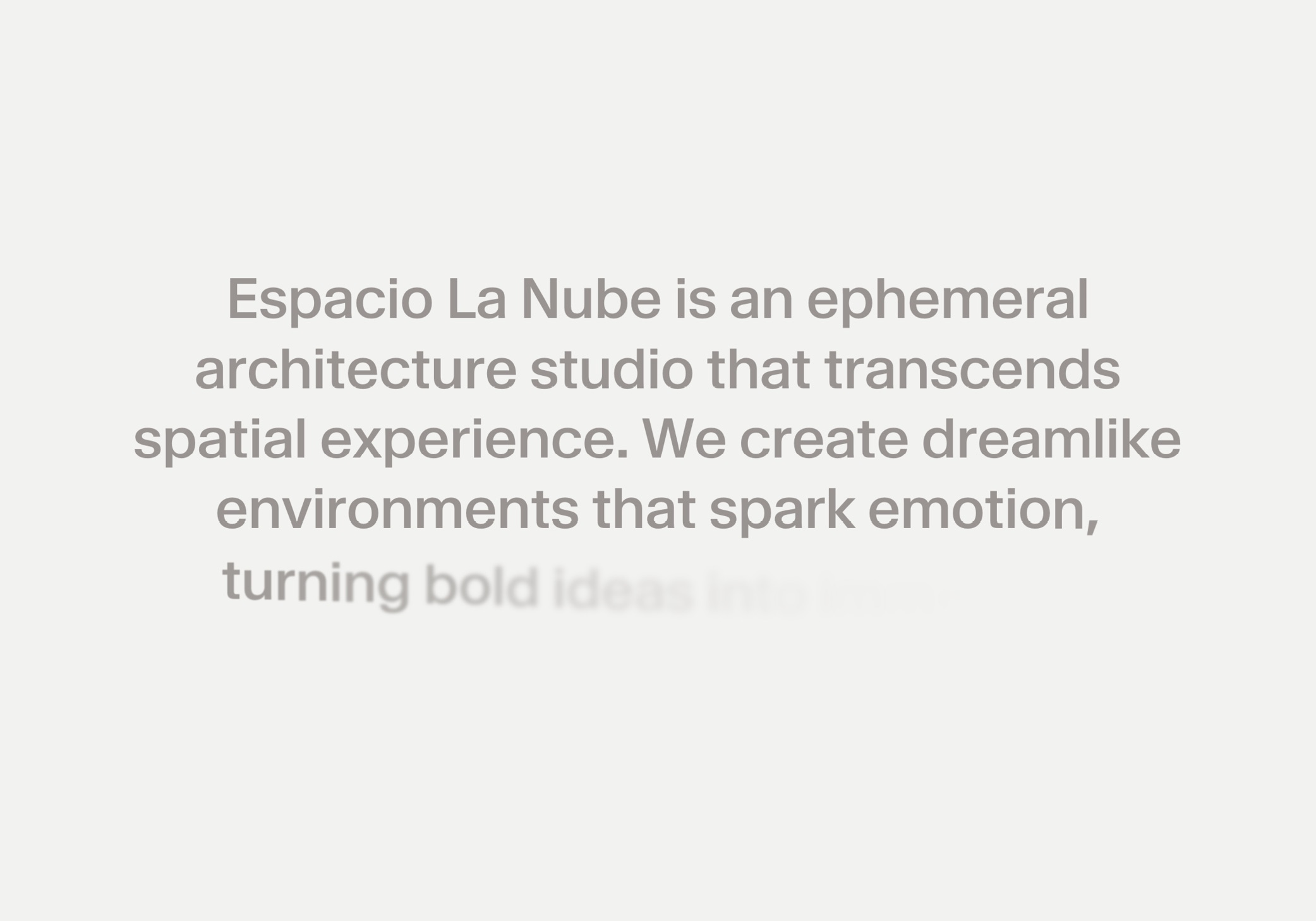 Nube, an architecture firm that builds experiences with air. Inspired by the nature of a cloud, Nube expands its brand with a new system rooted in lightness, emotion and transformation, echoing the essence of ephemeral architecture.
