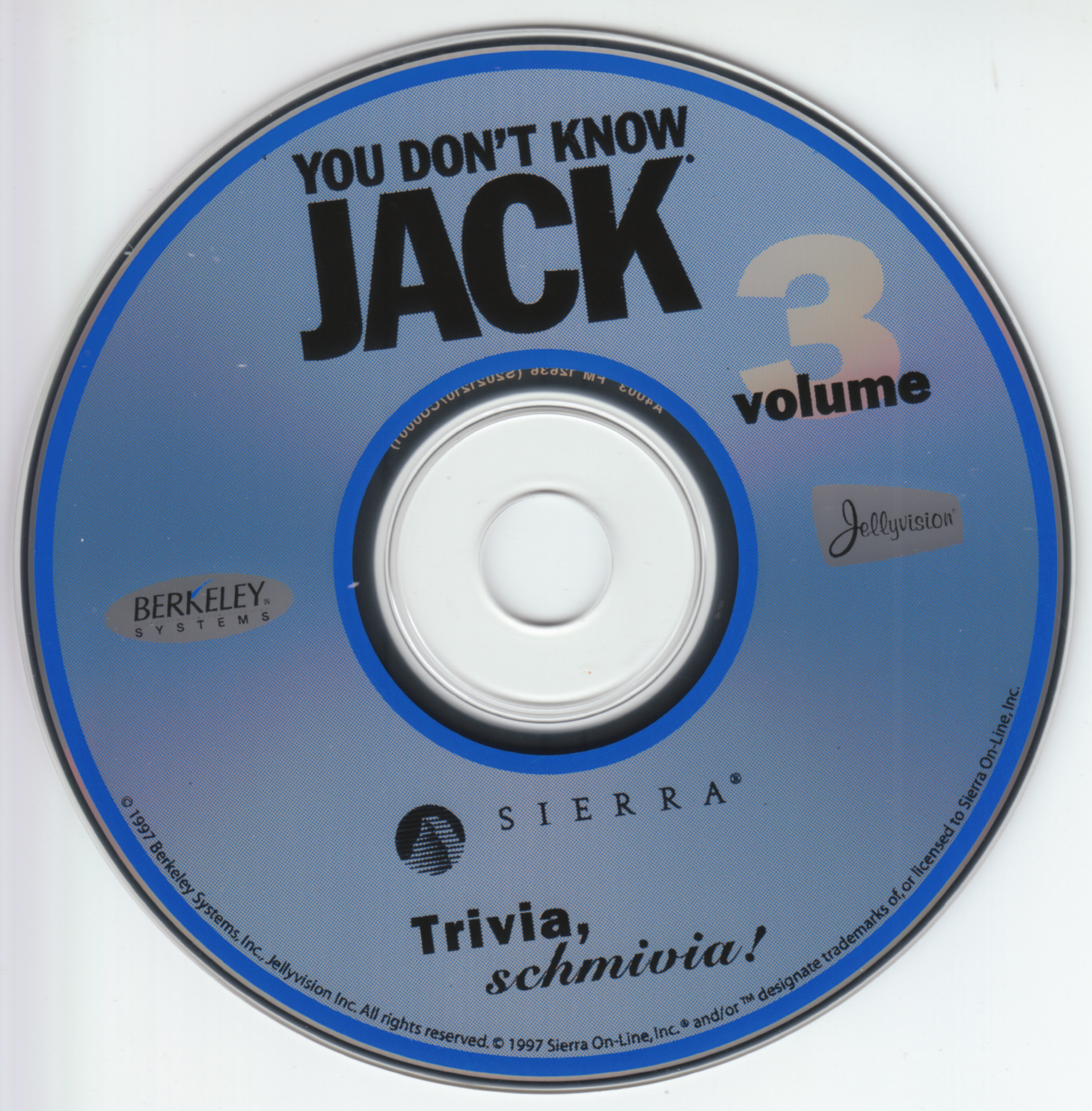 Volume 3 is the seventh installment in the You Don’t Know Jack series, and the third general knowledge edition. It was originally released on October 31st, 1997, and is hosted by Cookie Masterson.