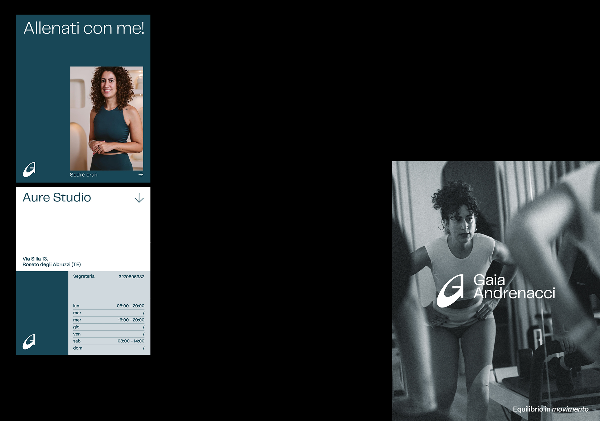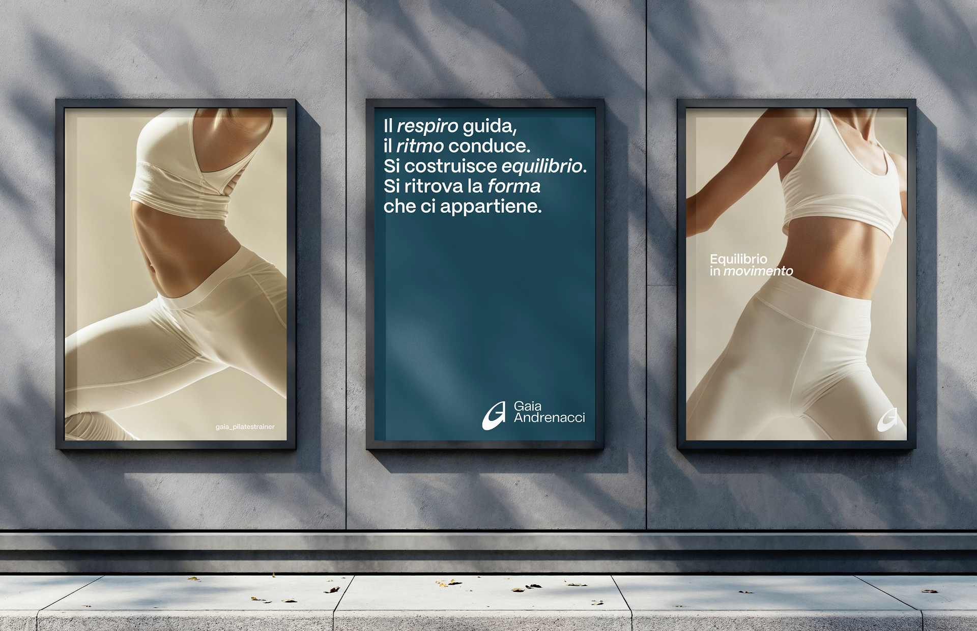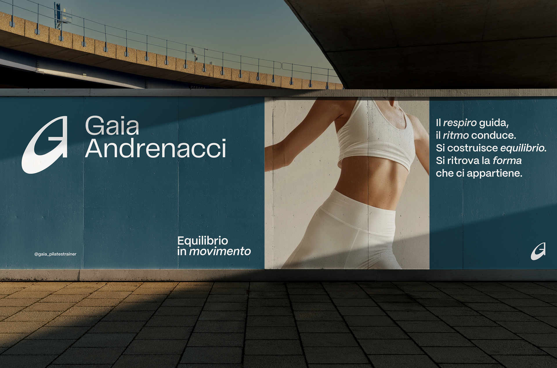 The brand concept stems from a reflection on a series of key words. From these ideas a visual system takes shape, expressing the dual nature of Gaia Andrenacci’s work: the precision of technical practice and the fluidity of natural motion. The goal was to translate these sensations into a graphic language that is simple, clean, and contemporary—able to convey well-being, professionalism, and presence, without sacrificing lightness or elegance.