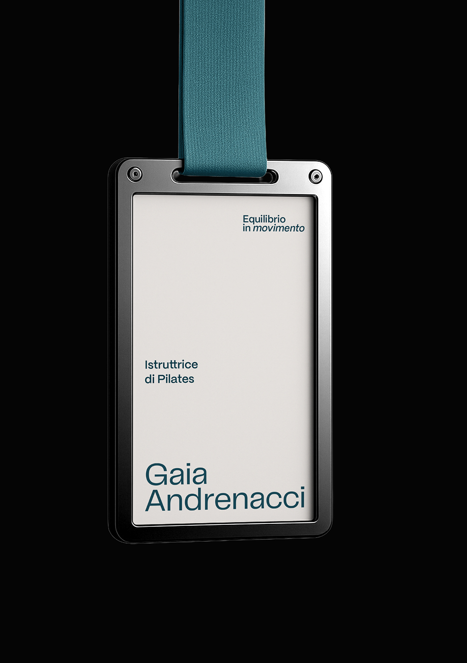 The payoff is conceived as an oxymoron—an encounter between two opposing concepts that together perfectly express Gaia’s philosophy. “Balance” represents stability, awareness, and bodily control; “movement,” on the other hand, evokes fluidity, adaptability, and growth. The word movement is written in italics to convey dynamism and progression, while balance retains a static, orderly form, symbolizing solidity. Together, they create a visual and conceptual contrast that becomes the heart of the brand message.