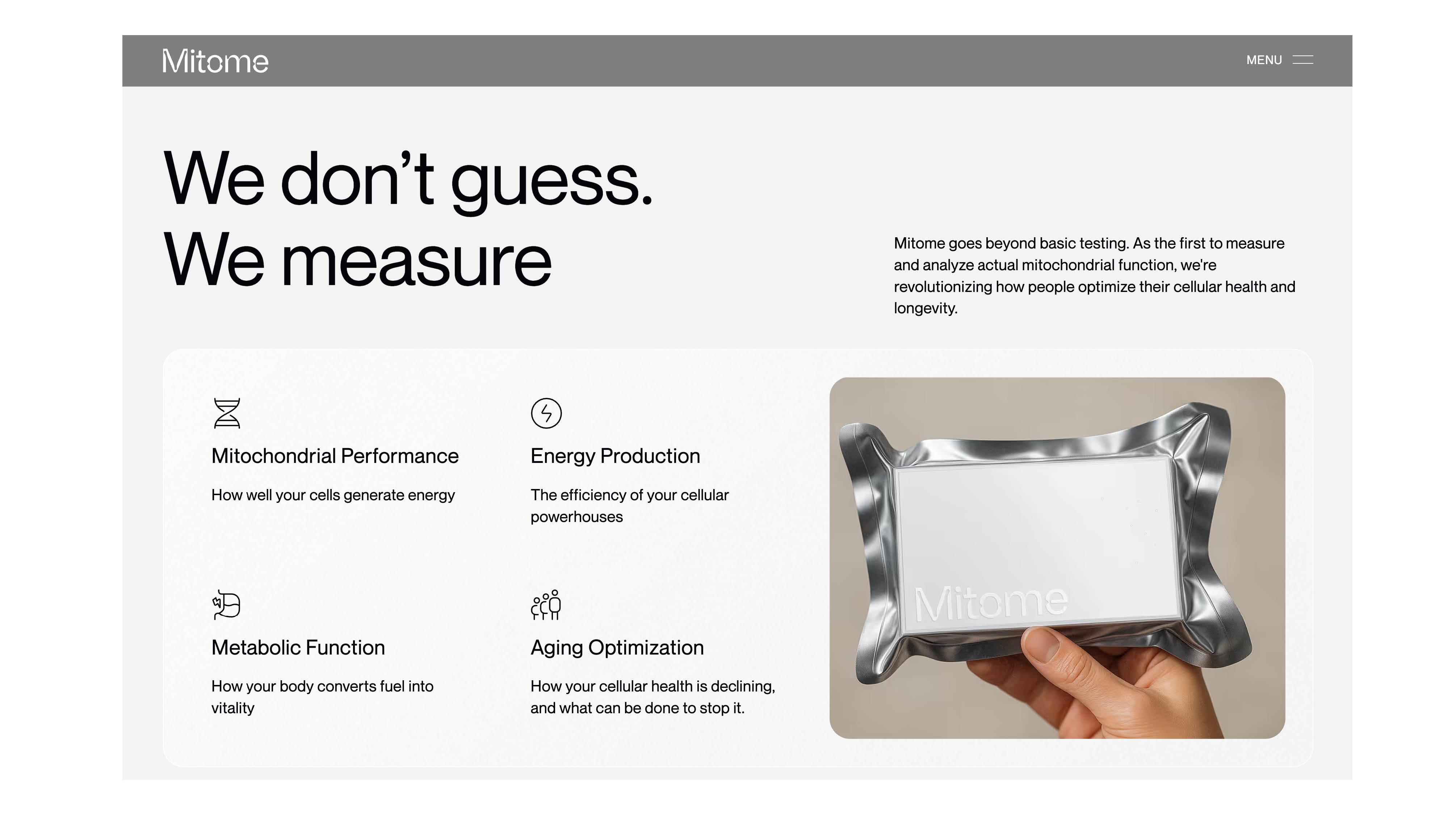 Hauss and Raum, the new typefaces by Justin Sloane and Huw D. Williams, in use for display and text for Mitome, the world’s first comprehensive mitochondrial analysis testing kit. On their website, they use Neue Montreal.