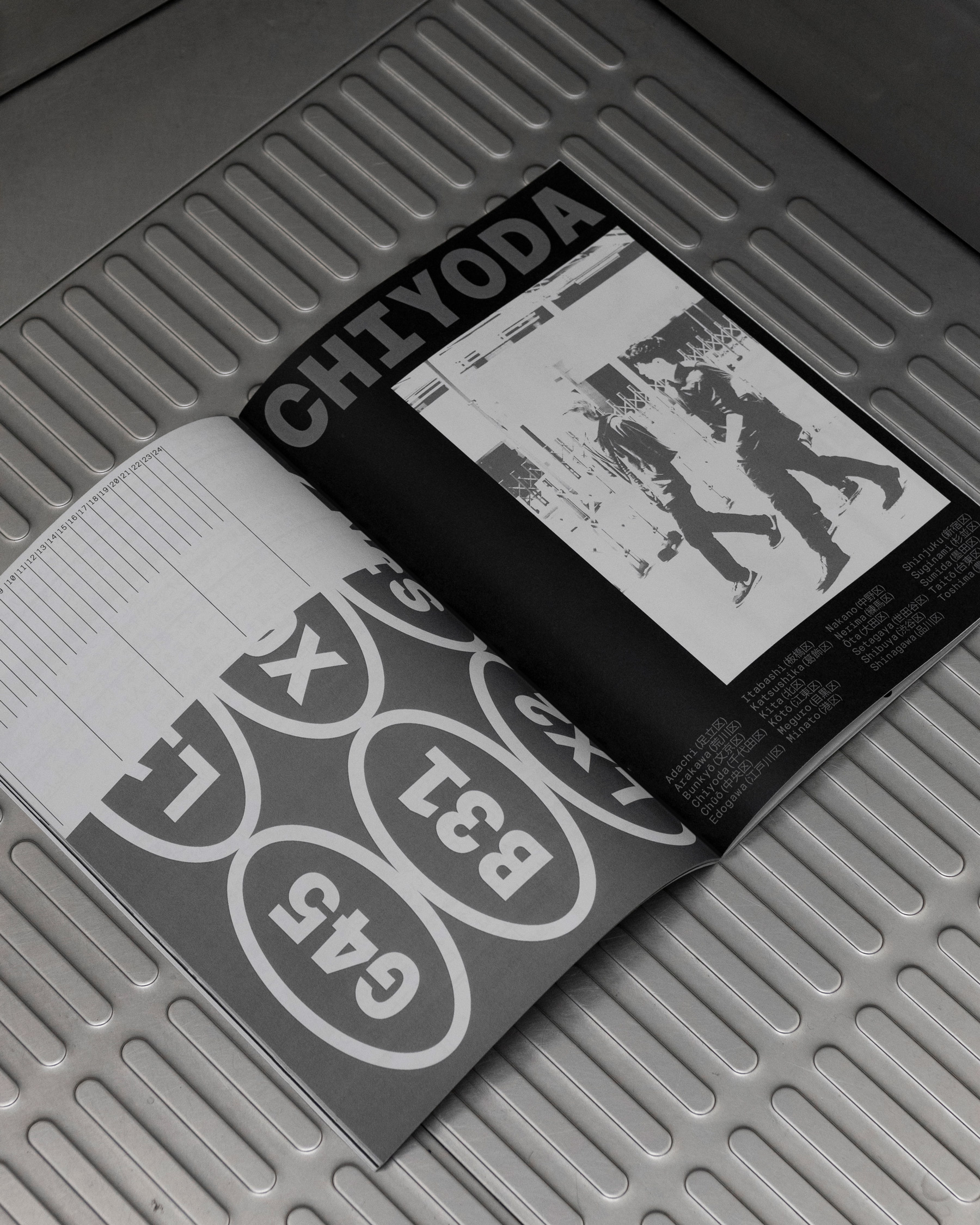 The issue examines the graphic systems that shape how we move through the city: from the micro-typography of subway maps and arrows on asphalt, to pedestrian-level signage, street-side billboards, bus and metro stops, airport signage, tactile paving, and multilingual instructional graphics. From metro signage to roadside warnings, it frames Tokyo not only as a city of buildings, but as a city of signals.