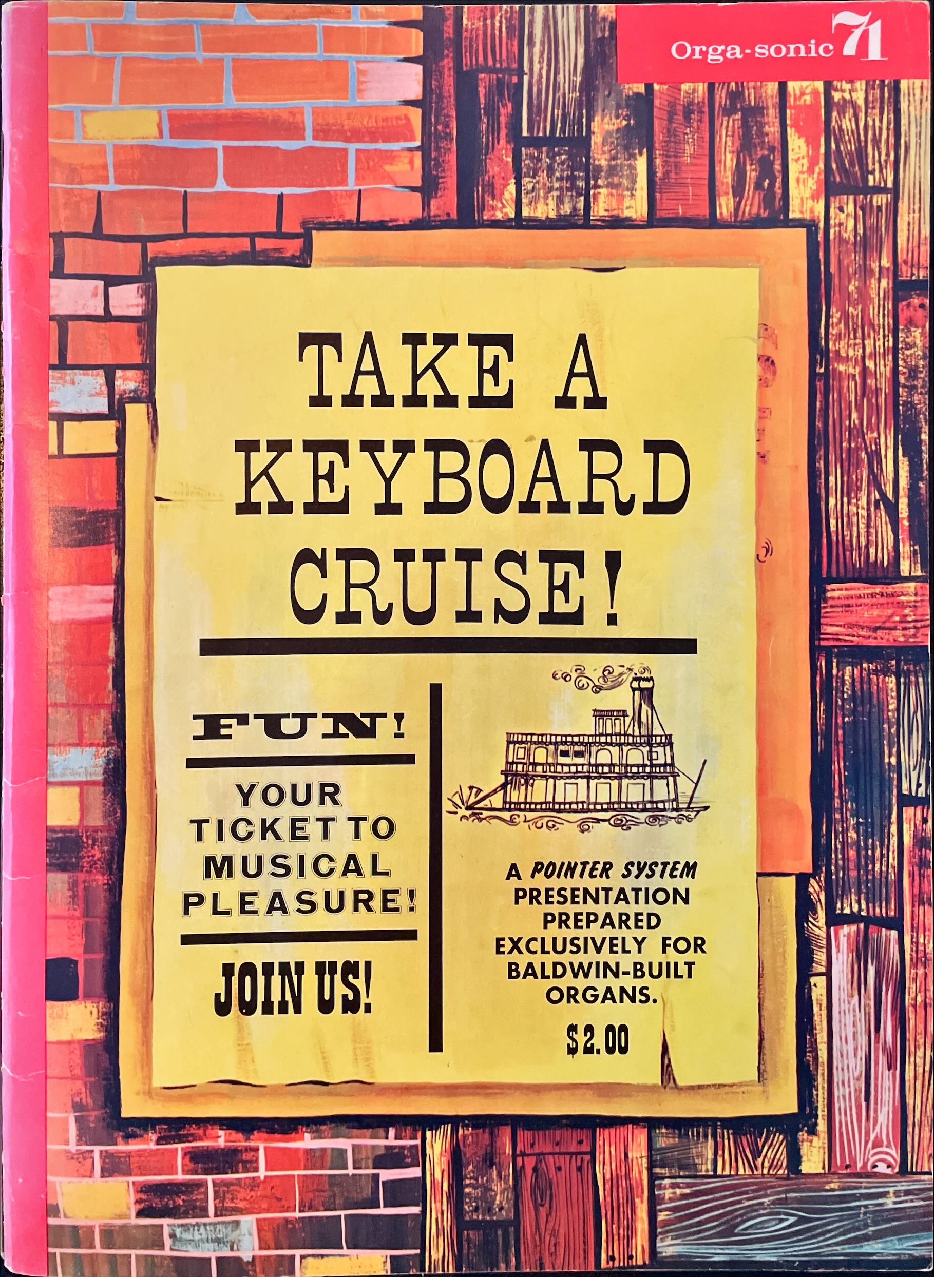 Take a Keyboard Cruise! organ instructional book Contributed by Ian Hooker on Jan 4th, 2026. Artwork published in 1961. Photo: Ian Hooker. License: All Rights Reserved. A teach-yourself-to-play-keyboard book that came with a Baldwin Orga-sonic electric organ. It has a Mississippi Riverboat theme throughout and uses 19th-century typefaces to match. Photo: Ian Hooker. License: All Rights Reserved. Photo: Ian Hooker. License: All Rights Reserved. Typefaces More about P.T. BarnumGet P.T. BarnumMore about Egyptian ExpandedMore about ComstockMore about PlaybillGet PlaybillMore about FlashGet FlashMore about FuturaGet FuturaMore about Century ExpandedGet Century ExpandedMore about Brush ScriptGet Brush Script Formats Books (6519) Topics Education/Academia (2180) Music (6351) Designers/Agencies unknown (4183) Tagged withmusic education (24)organs (15)Pointer System (1)paperbacks/softcovers (1961)book covers (5857)19th-century style (9)typographic eclecticism (289)all caps (7585)steamboats (4)book interiors (3659)initials (231)ropes (4)keyboards/keypads (33)borders and rules (1125)exclamation mark (!) (363)1960s (776) Artwork location United States (9905) Minnesota (23) Winona (1) In SetsFonts I Love (Reybach C) (333) Post a comment Name Email – will not be published Website Your response Submit Comment More P.T. Barnum in use Intro to Little Engine Out West1950Contributed by Nick Sherman Dancing & Listening To The Golden OldiesunknownPhoto(s) by Bart Solenthaler on Flickr. Teddy Wilson – And Then They Wrote… album art1960unknownContributed by Bryson Stohr Sponsor More in Education/Academia Langenscheidt identity redesign2014KW43GREY GermanyJürgen AdolphContributed by Stephen Coles Archive of Uncertainty website2021Leonie KalteneggerContributed by Leonie Kaltenegger XRDS magazine (2010–)2010PentagramLuke HaymanRami MoghadamContributed by Emtype Foundry Staff Pick Bruxas e Bruxos da Cidade2015Babilônia EditorialRafael NobrePaula CruzContributed by Rodrigo Saiani More in Books Oreet Ashery: How We Die is How We Live Only More So2019Marcello Jacopo BiffiMousse PublishingContributed by Marcello Jacopo Biffi Kohler: Be Bold2024SpanBud RodeckerAlyssa ArnesenContributed by Nick Adam 차의 계절 The Seasons of Teac. 2022Studio GominContributed by Nikolas Wrobel Staff Pick KeepReading math booklets2017Carlos PadillaContributed by Typotheque More Fonts In Use Monumental Shadows: On museums, memory and the making of history2023Clara SanchoContributed by Clara Sancho Staff Pick Bus Routes of Greater Israel/Palestine2012Ahmad BarclayPolypodContributed by Stephen Coles Staff Pick Posters for Theater / Sinfonieorchester St. Gallen2013TGG Hafen Senn StiegerContributed by Florian Hardwig Staff Pick Mattiel – Georgia Gothic album campaign2021Mattiel BrownContributed by David Jonathan Ross Staff Pick