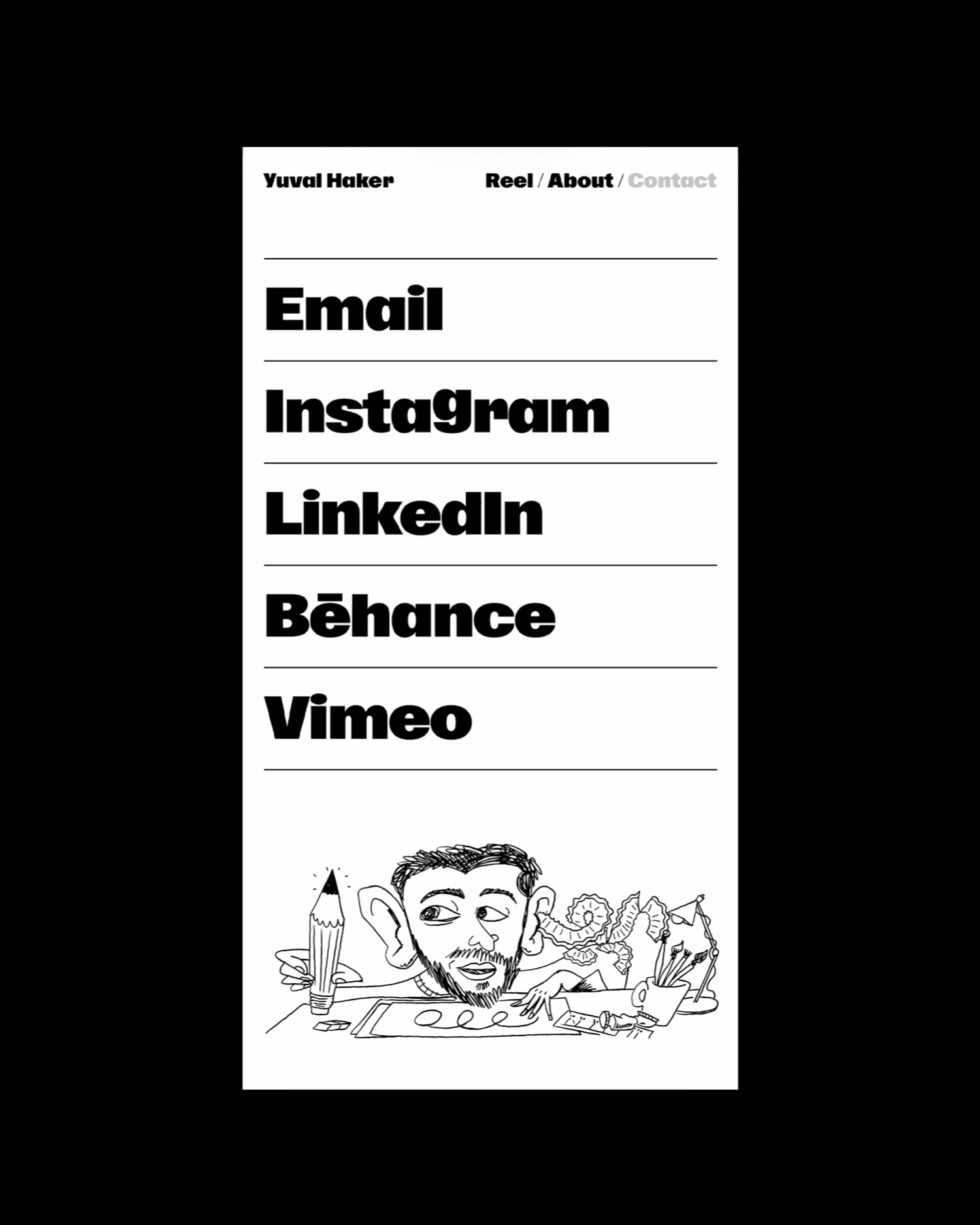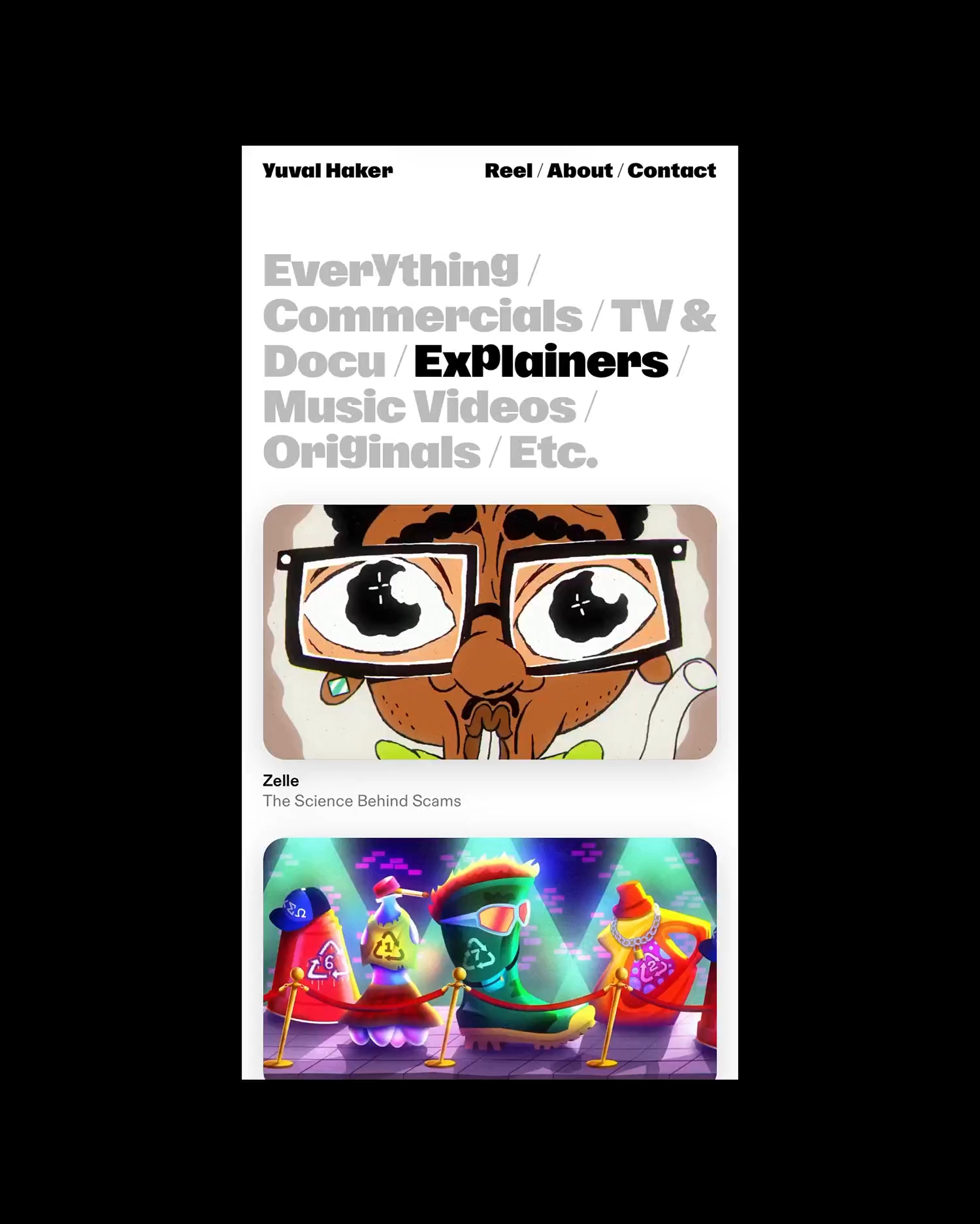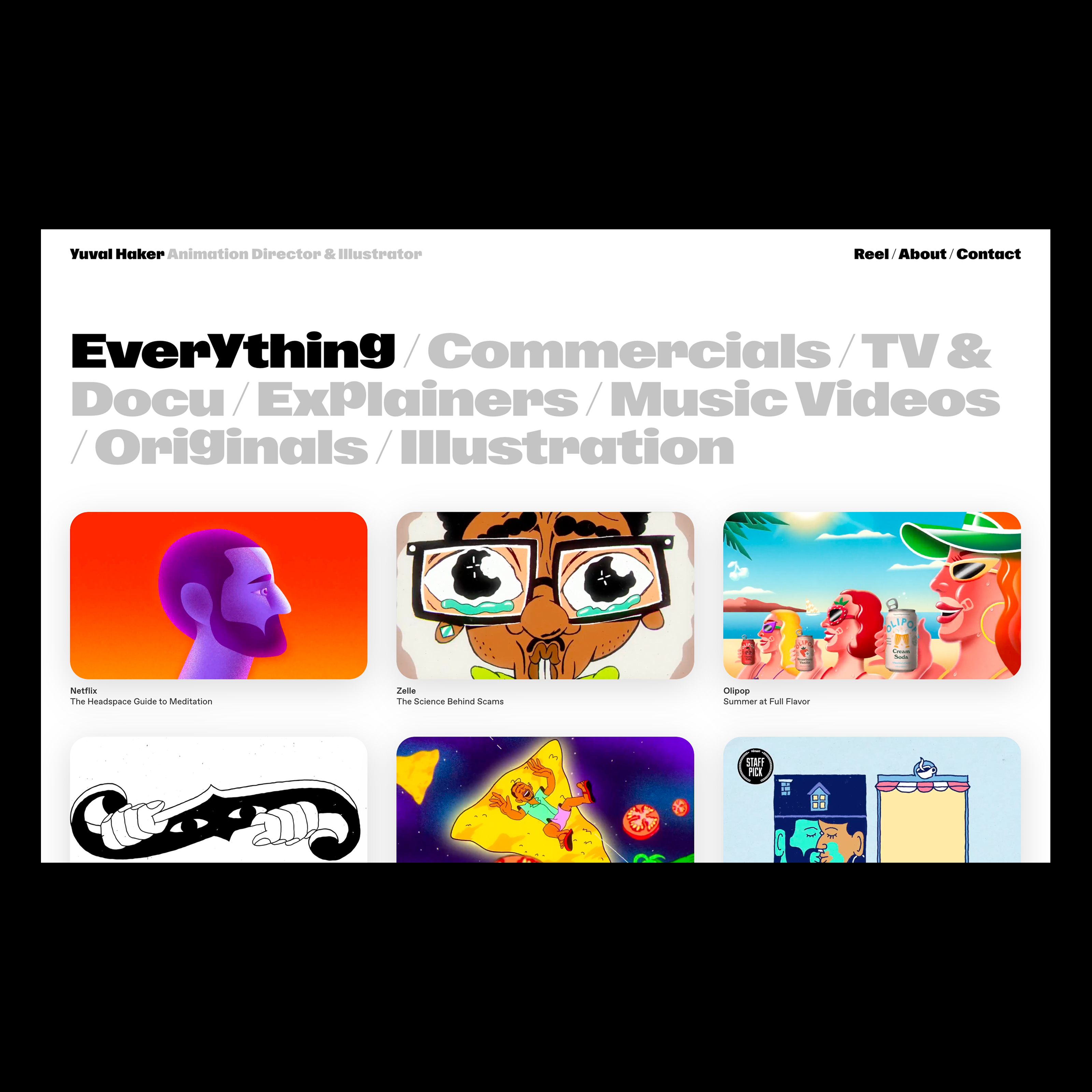 Yuval Haker is an Emmy-nominated director whose work spans narrative, commercial, and experimental film. His expressive visual worlds required a portfolio that could frame diverse projects without overwhelming them.