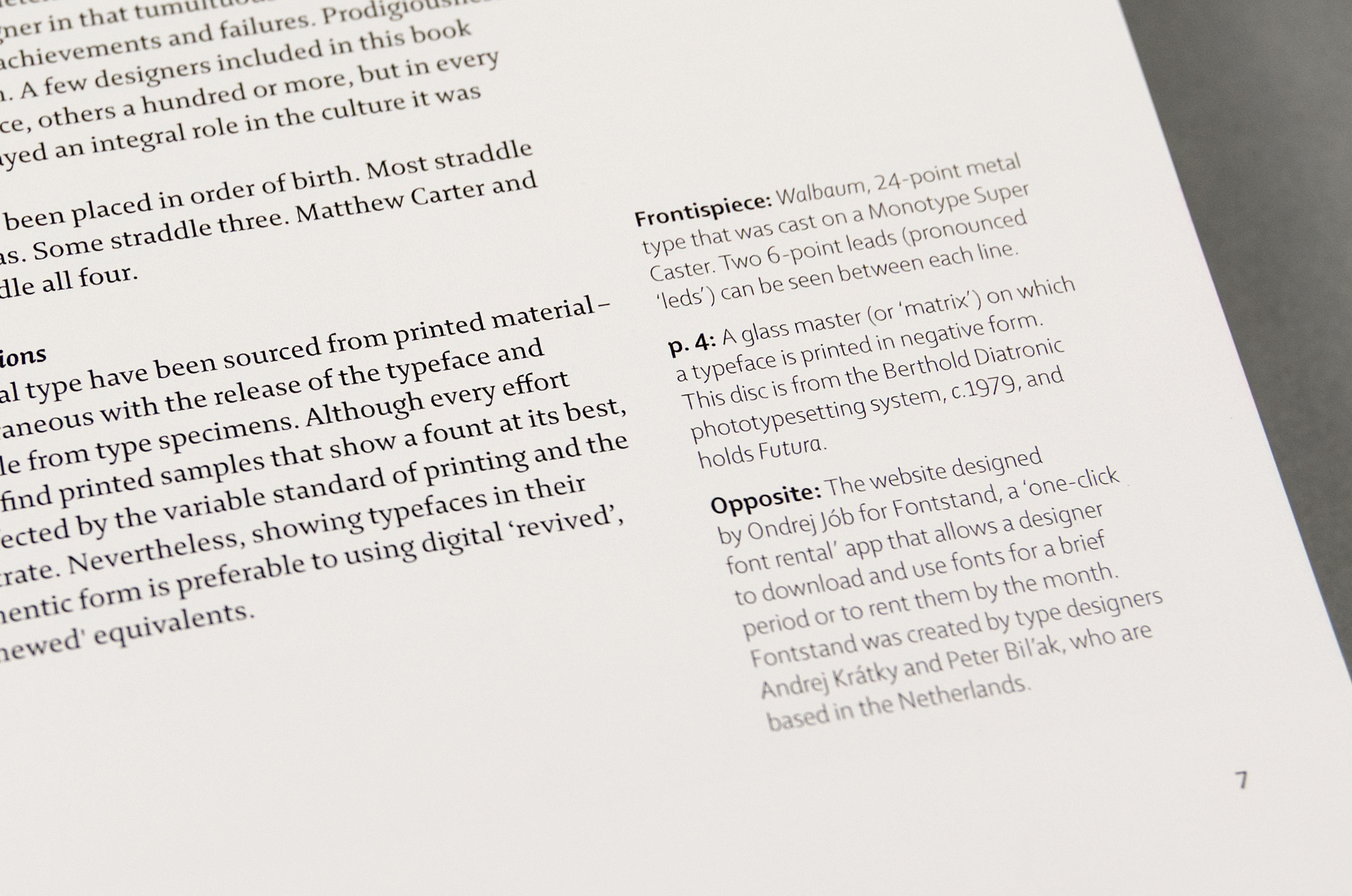 The book is typeset in Enigma Text with Shaker used for captions. Cover and title page feature Eurostile.