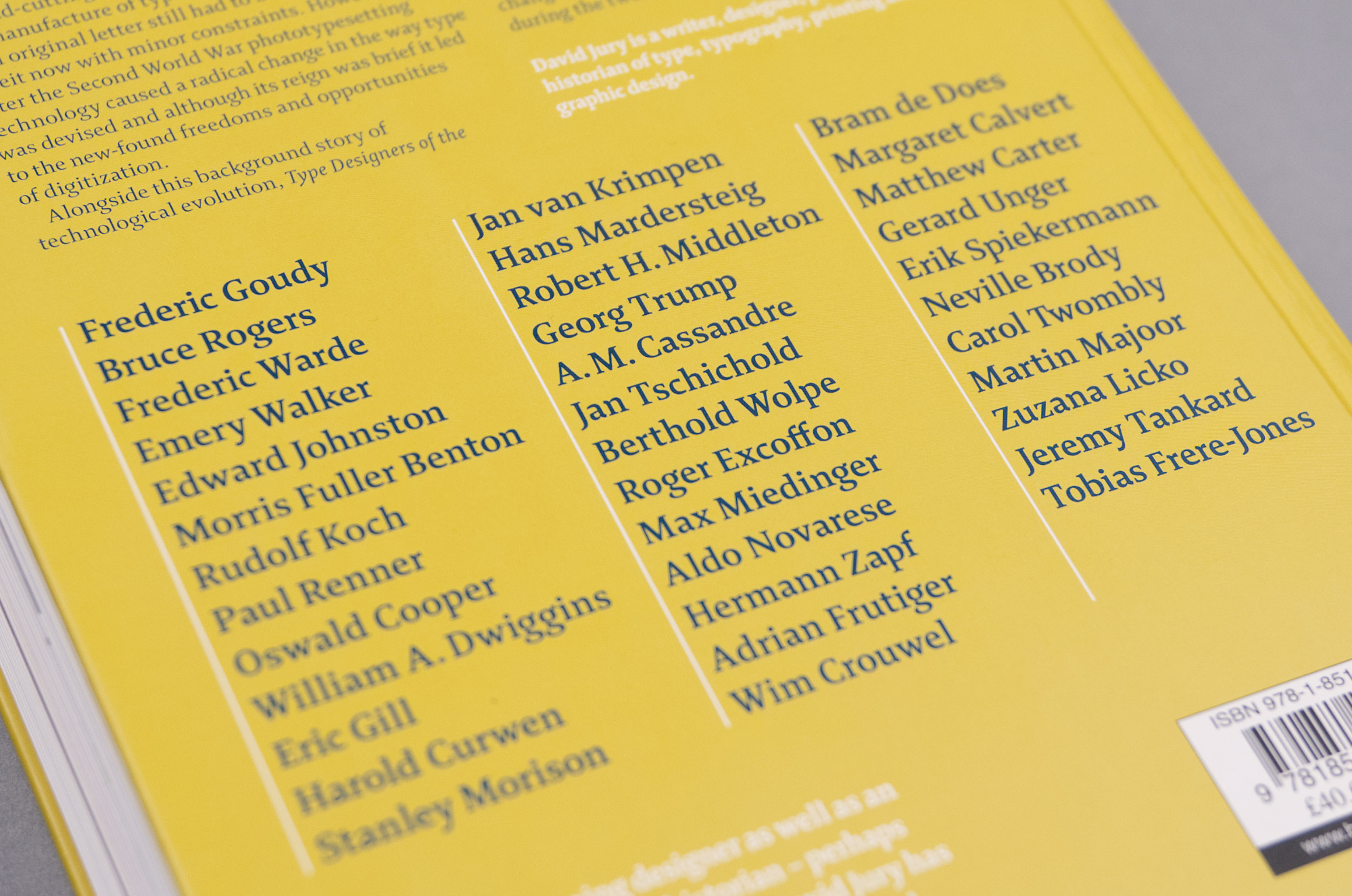 Produced by Bodleian Library Publishing, Type Designers of the Twentieth Century written and designed by David Jury explores the many developments typefaces have experienced through the twentieth century. The book presents 37 type designers working at different times and with different technologies, how they have reacted to technological and cultural changes and the typefaces they created.