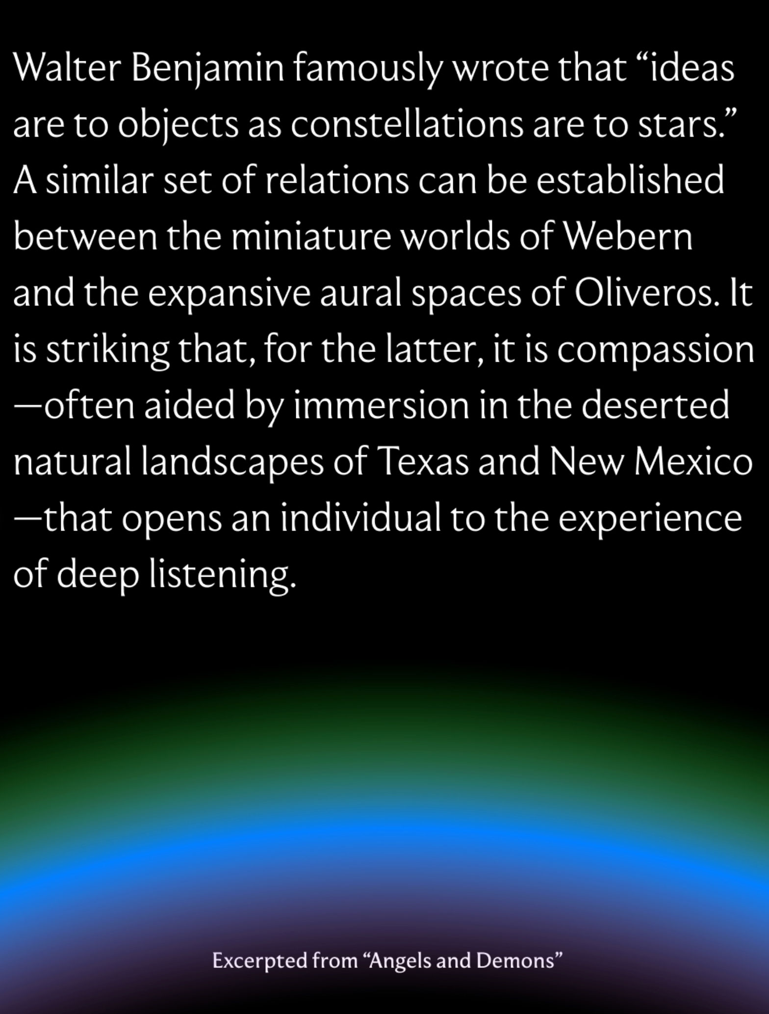 In response to the curatorial theme, graphic design studio nonplace developed a visual system founded on a series of radiant halos symbolizing spiritual energy. Their arrangement into modular structures expresses the organization of immaterial forces into the patterns and forms of art and techne, providing a flexible, transformable, and infinitely extendable visual system. (Text rephrased from nonplace)