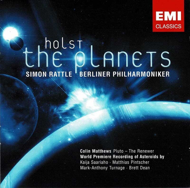 This album with the Berliner Philharmoniker’s rendition of The Planets under Simon Rattle (b. 1955) was first released as a double CD in 2006. Gustav Holst’s orchestral suite is complemented by four additional tracks by contemporary composers – thanks to Colin Matthews, Pluto finally gets acknowledged, too (just to lose its status as a proper planet the same year) – plus a video by Paul Bates.