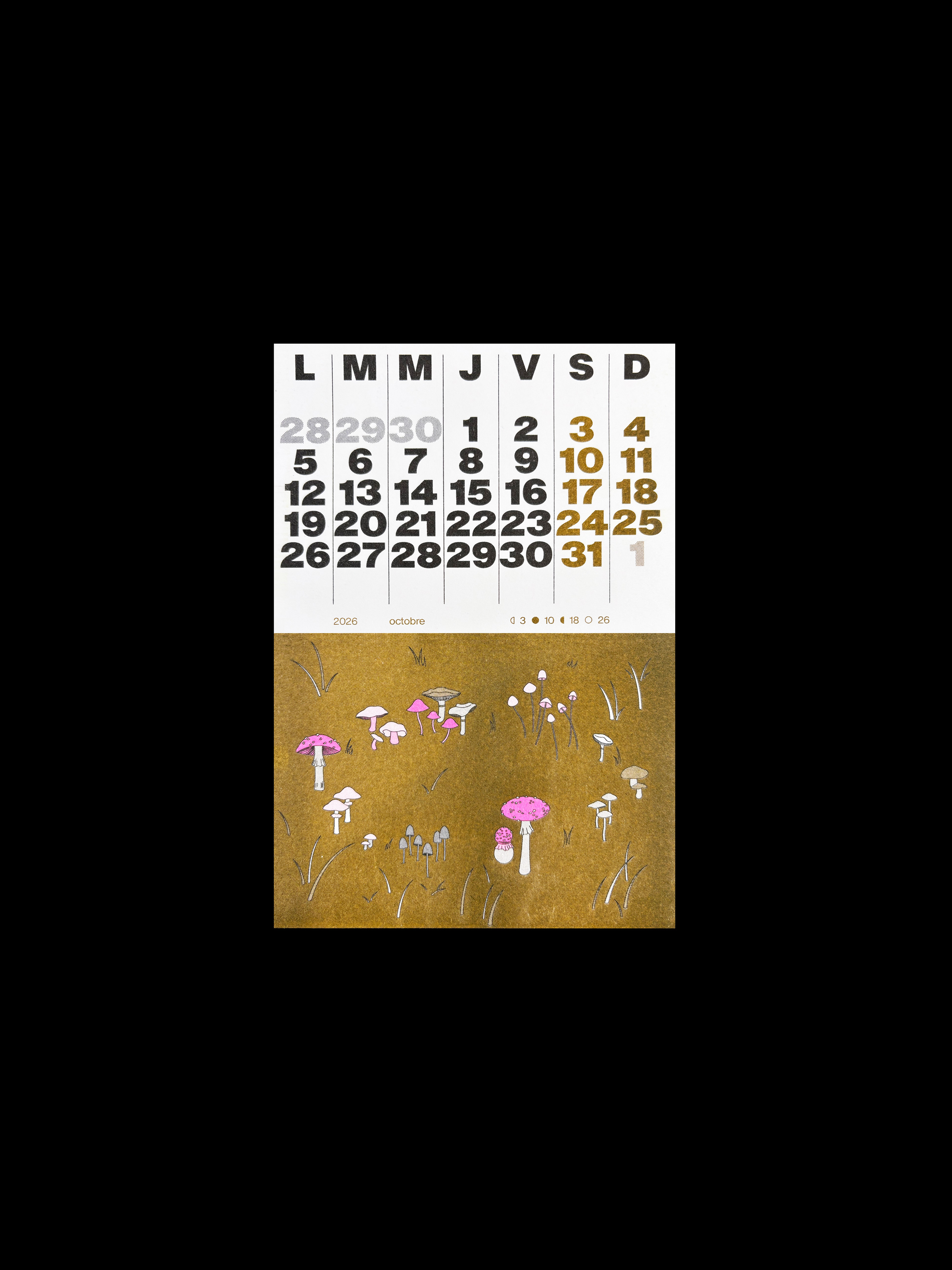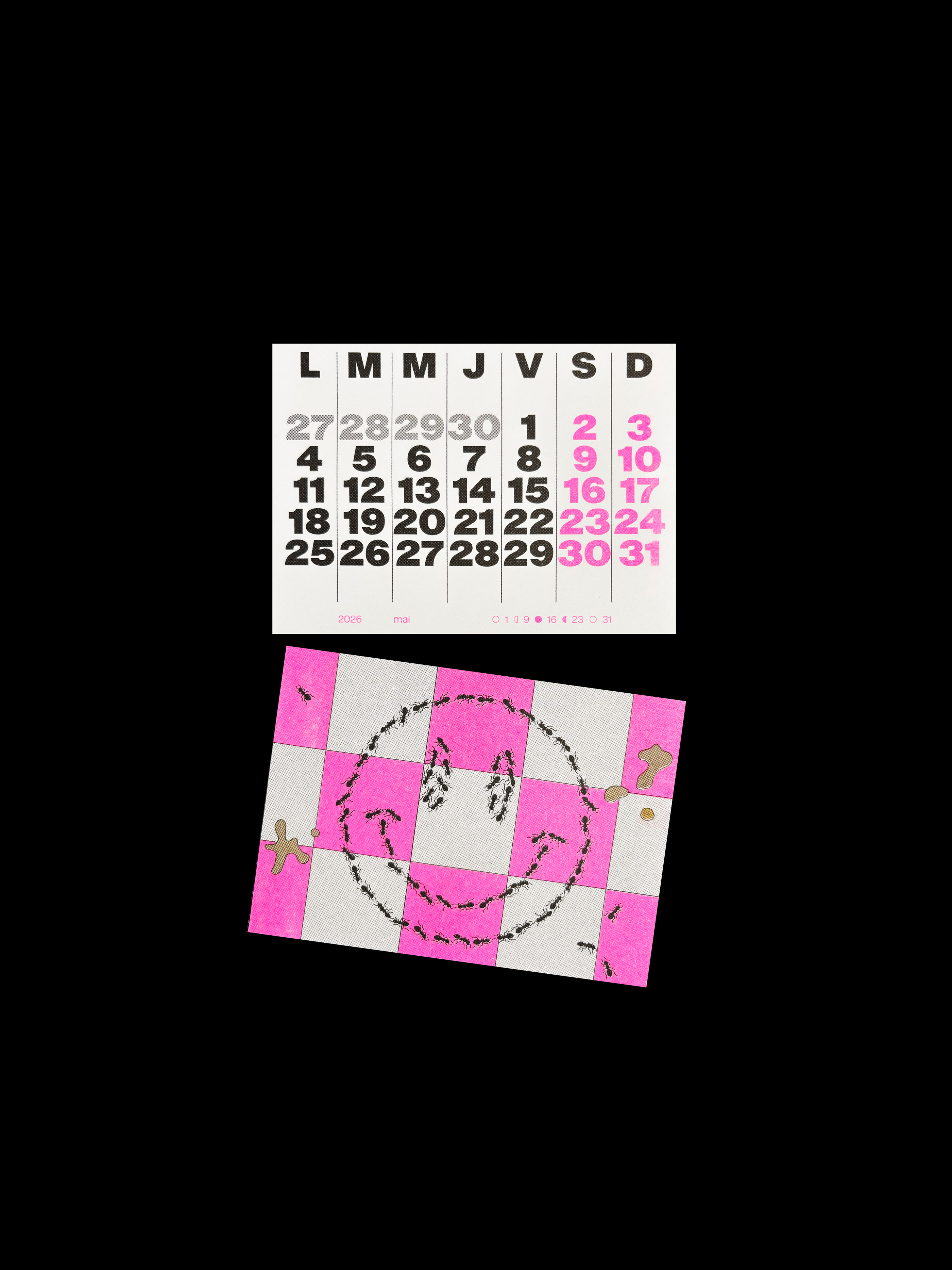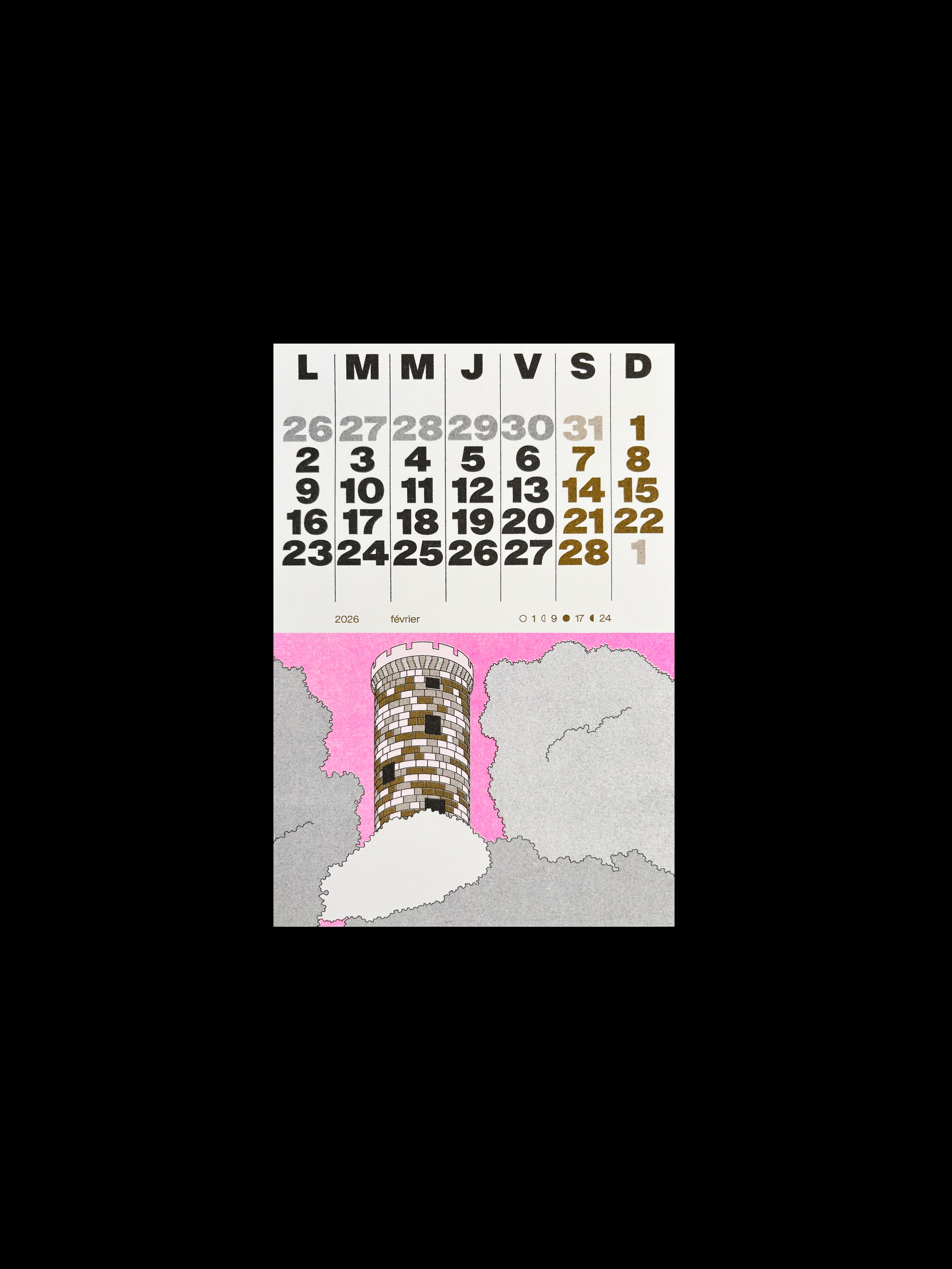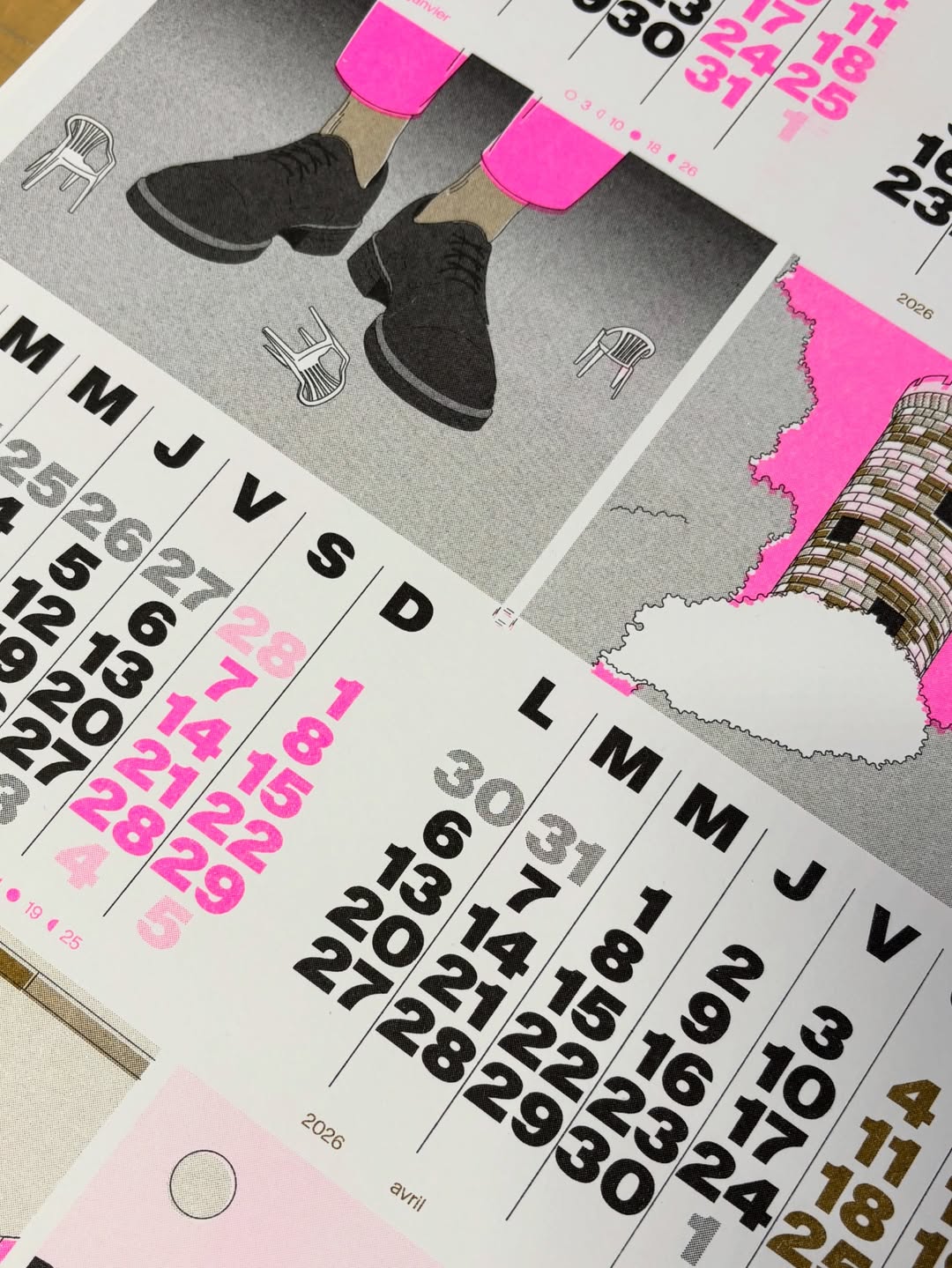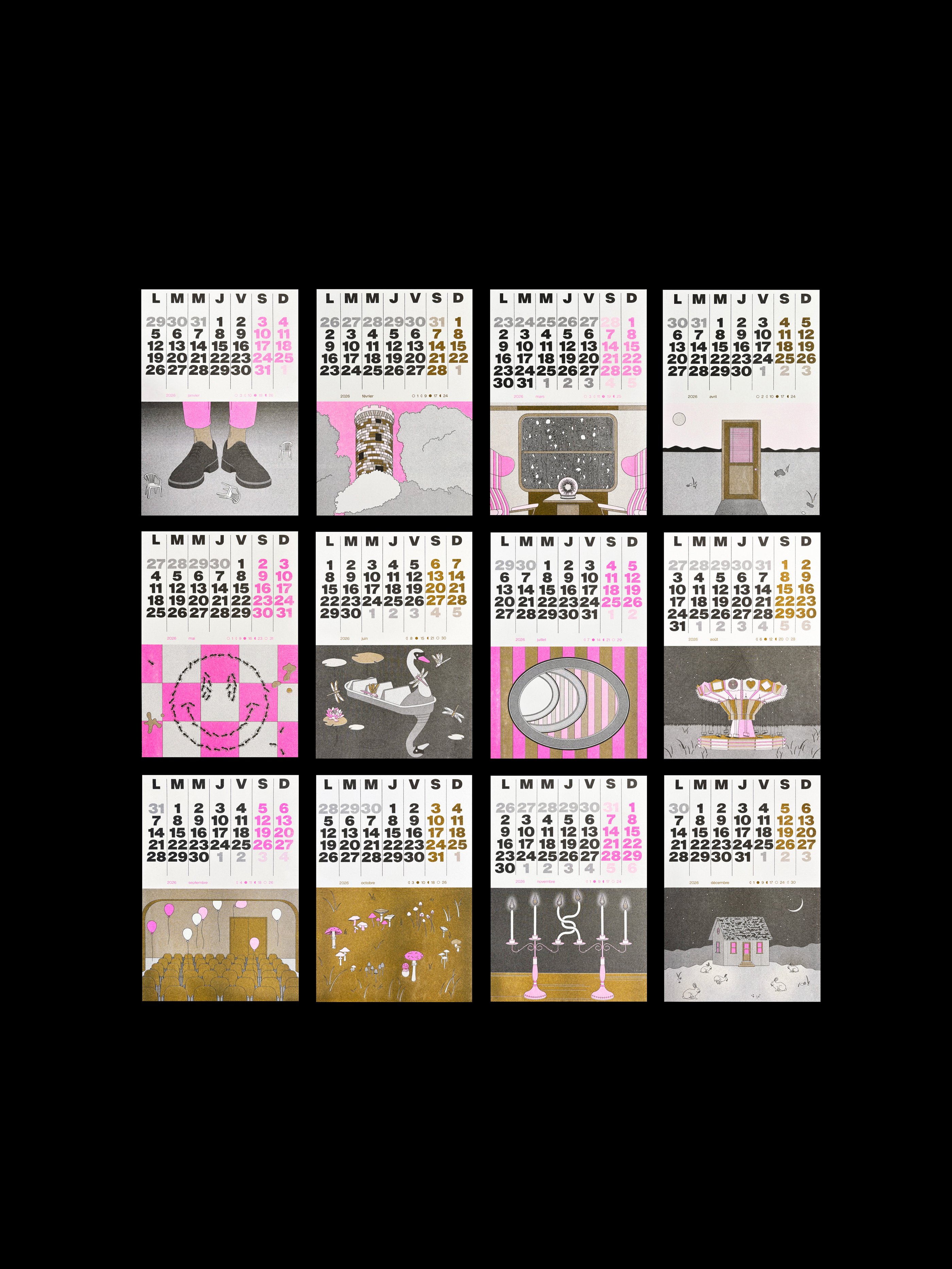 Johanne Roten Calendar 2026 Contributed by newglyph on Jan 12th, 2026. Artwork published in circa 2025. Source: www.instagram.com License: All Rights Reserved. This 2026 calendar was designed, illustrated, and Risograph printed by Swiss designer Johanne Roten. Her yearly calendar has become an anticipated release for enthusiasts of vibrant and enigmatic imagery. Source: www.instagram.com License: All Rights Reserved. Source: www.instagram.com License: All Rights Reserved. Source: www.instagram.com License: All Rights Reserved. Source: www.instagram.com License: All Rights Reserved. Source: www.instagram.com License: All Rights Reserved. Source: www.instagram.com License: All Rights Reserved. Typefaces More about BaikalGet Baikal Formats Ephemera (1228) Topics Graphic Design (3028) Home/Interior (837) Designers/Agencies Johanne Roten (3) Tagged withcalendars (155)Risograph printed (240)illustration (1607)numerals (1094)three-color (79)pink (407)French (language) (2572)self-published (314)pink black and gold (1)smileys (84) Artwork location Switzerland (1127) Lausanne (155) In SetsDesigns by Women (Fonts In Use Staff) (3634) Post a comment Name Email – will not be published Website Your response Submit Comment More Baikal in use YOUR KISS SO SWEET YOUR SWEAT SO SOUR by Giulietta Margot2024Dennis Moya RazafimandimbyContributed by Dennis Moya Razafimandimby Foreign Agent: Live bold posterc. 2021Balmer HählenContributed by newglyph Temporal Variation at Le Bourg Clubc. 2024Dennis Moya RazafimandimbyContributed by Dennis Moya Razafimandimby Sponsor More in Graphic Design The Power of Creativity poster2012Johnson BanksMichael JohnsonContributed by Nick Sherman Monica Magsanoc website2018Monica MagsanocContributed by Tim Shoaf Disc Color 19782020Roberlan ParesquiContributed by Matthijs Herzberg Play as Process2020Noah TreviñoContributed by XYZ Type More in Ephemera Malév Hungarian Airlinesc. 1955unknownPhoto(s) by Nile Peterson on Flickr. Wilkinson & Riverac. 2024Thoughtful StandardContributed by Lucas Le Bihan Tower Publishing Co. letterheadc. 1885unknownContributed by Leonardo Cuellar “Herzlichen Glückwunsch zum neuen Jahre”c. 1905Photo(s) by altpapiersammler on Flickr. More Fonts In Use Us Blah + Me Blahc. 2016Paul GaconContributed by Swiss Typefaces Staff Pick JFK-Show DVD Booklet2008Studio Laucke SiebeinDaniel BingerContributed by Stephen Coles Staff Pick Seattle Met Beerbook2012André MoraContributed by André Mora Staff Pick Taj Majal, Creedence Clearwater Revival, Electro Luminescense, etc. at the Avalon Ballroom, May 31, 19681968Paul KaganDavid SmithContributed by Stephen Coles Staff Pick