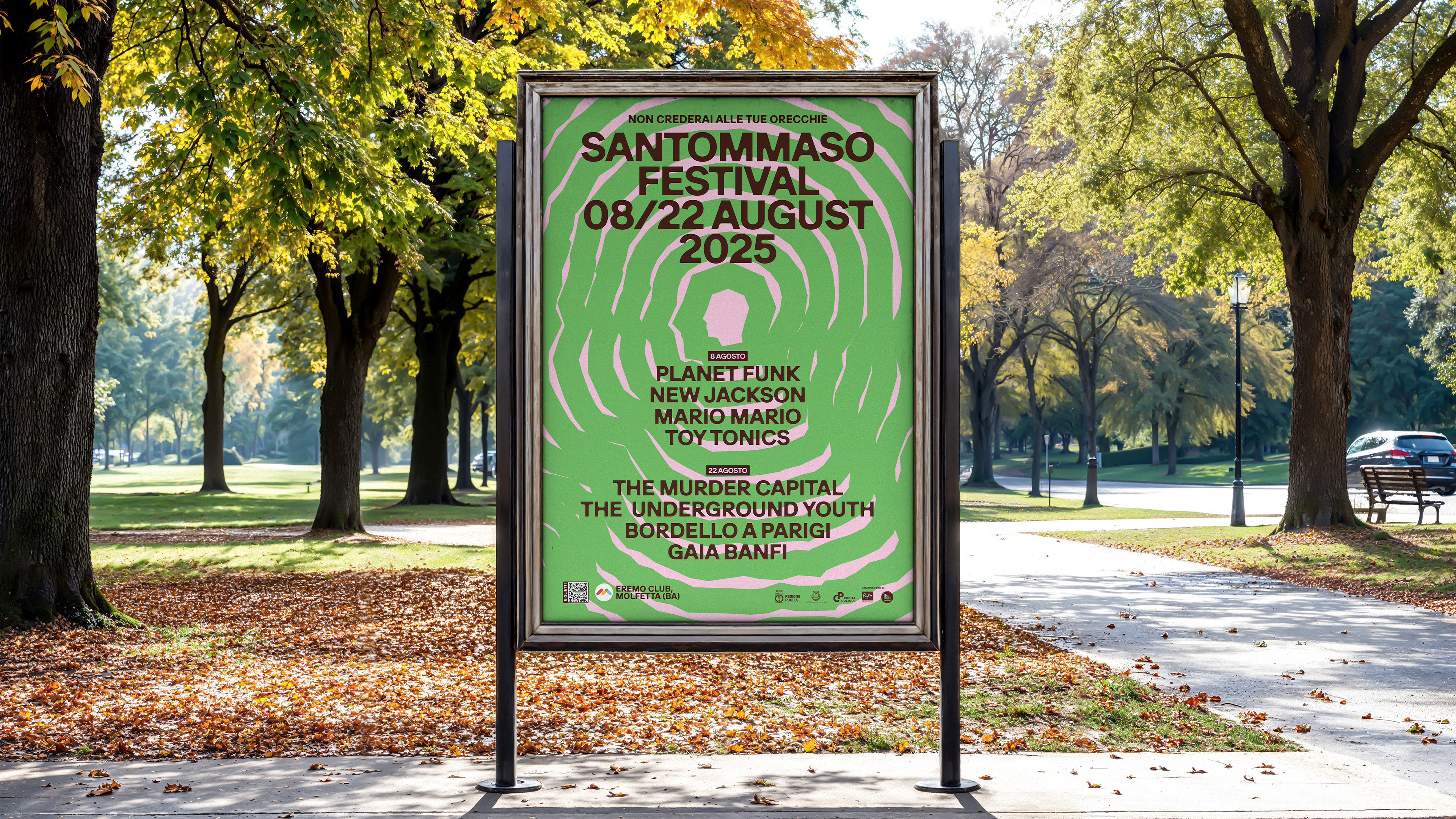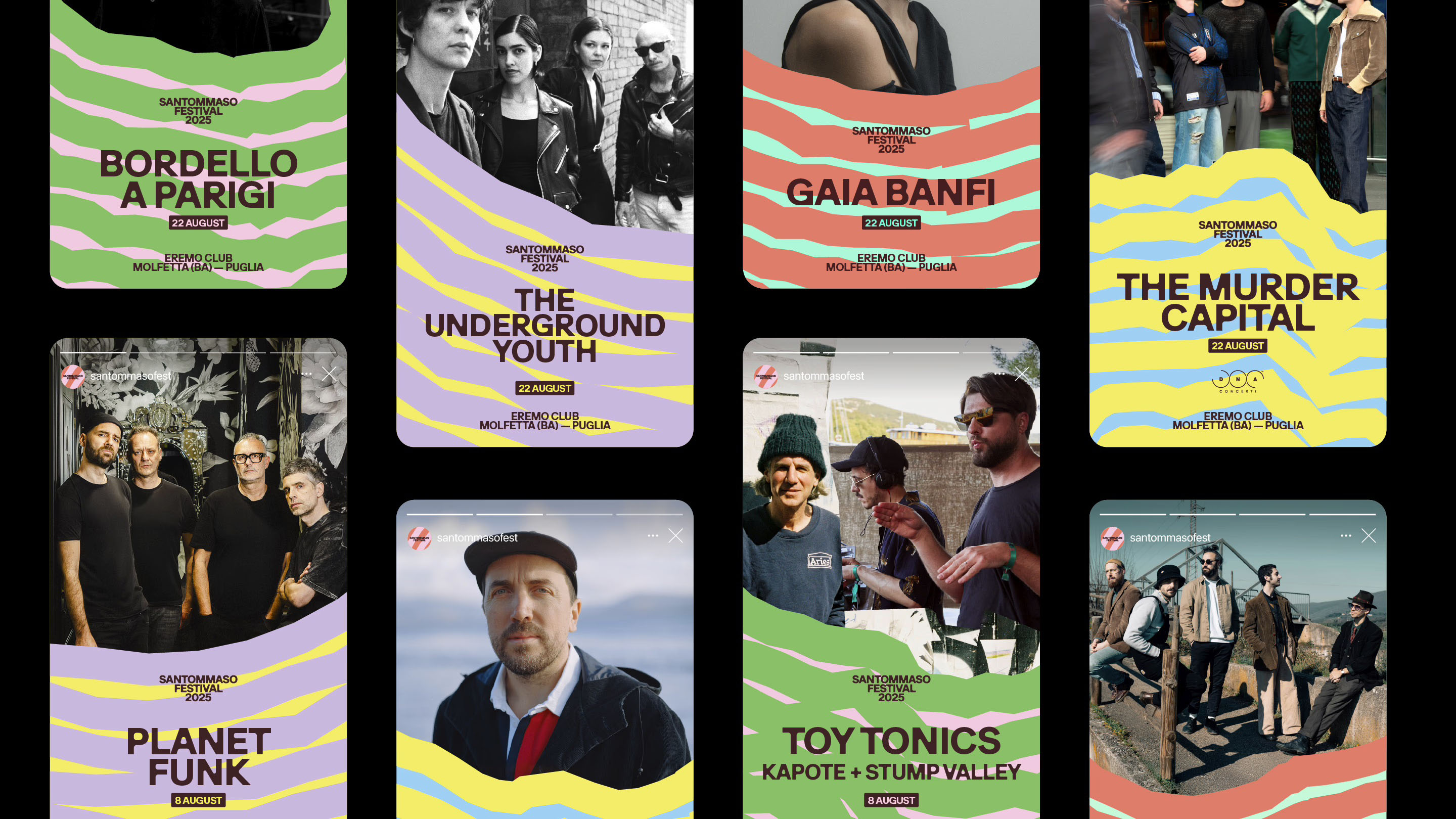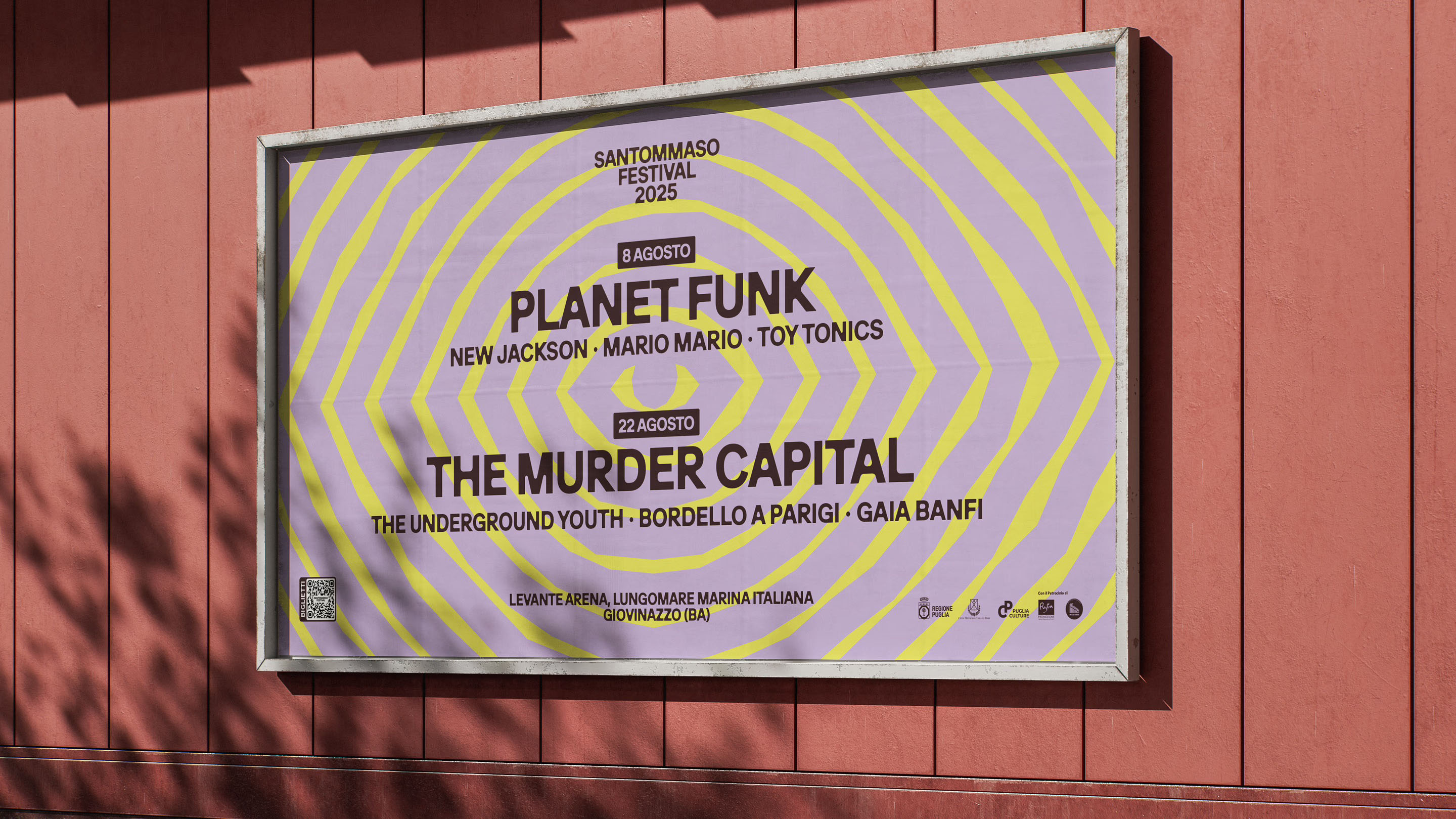 When Santommaso Festival, a new music event in Southern Italy, set out to establish its first visual identity, the goal was to translate a deeply rooted local story into a contemporary cultural experience. Named after the city’s patron saint, the festival draws inspiration from a narrative of faith, wonder, and the legendary discovery of sacred relics. Our challenge was to transform this sense of mysticism into a strong and recognizable visual language capable of launching a brand-new event. We developed an identity that balances symbolism and sound, built around a bold, uppercase typeface that provides consistency and authority, paired with a system of mystical symbols radiating outward like sound waves to convey energy and movement. The graphic system comes to life through dynamic poster compositions, where symbols expand into immersive visuals, supported by a vibrant, contemporary color palette. The result is a striking and memorable identity that honors the city’s heritage while expressing the fresh, energetic spirit of live music.