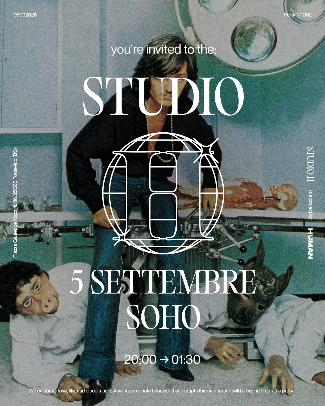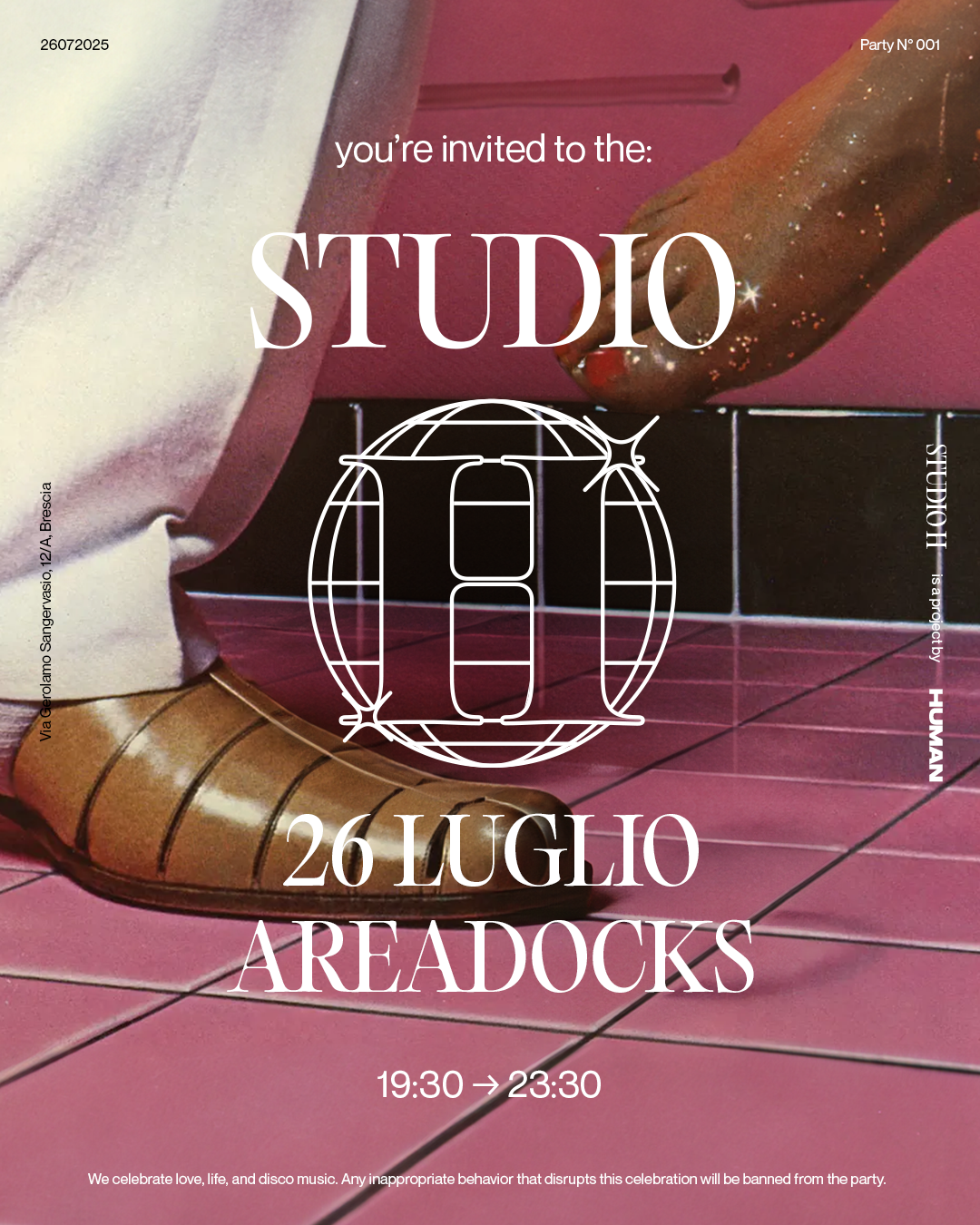 Studio H is a disco music event that takes place in Brescia, Italy. It aims to revive the true disco music of the 1970s and 1980s for new generations. Studio H is a product by HUMAN, see also this previous post.