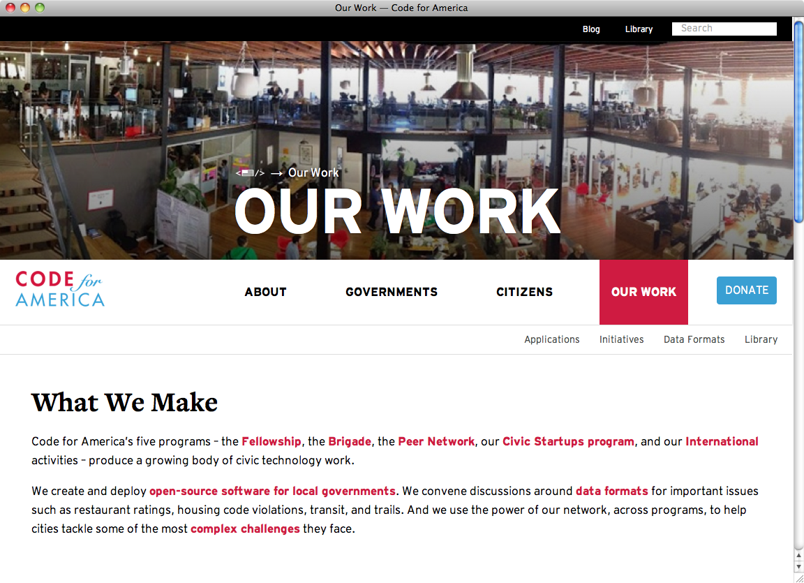 Code for America is a non-partisan and non-political organization that arranges and alleviates the collaboration between technology and design professionals and city governments in the United States in order to build open source technology.
