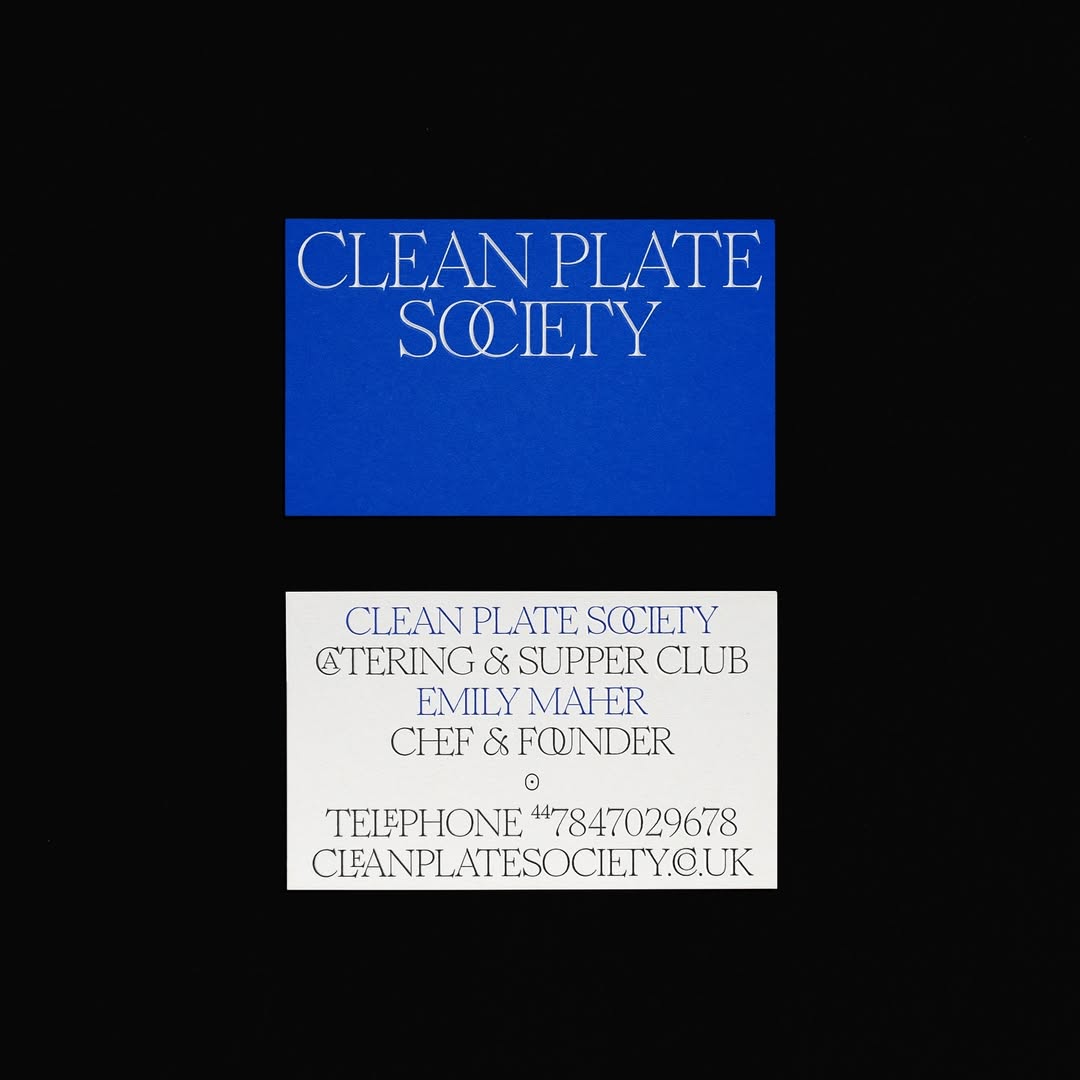 Clean Plate Society Contributed by CLAUDE TYPE on Mar 3rd, 2026. Artwork published in September 2024. Source: www.instagram.com James Mudd. License: All Rights Reserved. Clean Plate Society is a club and catering venture that develops and serves seasonal menus. Its services include private dining events and catering. The identity was designed by James Mudd and is set in Romie Regular, designed by Margot Lévêque. Source: www.instagram.com James Mudd. License: All Rights Reserved. Source: www.instagram.com James Mudd. License: All Rights Reserved. The script used for “inaugural” is yet unidentified. Young Gallant is similar. Source: www.instagram.com James Mudd. License: All Rights Reserved. Source: www.instagram.com James Mudd. License: All Rights Reserved. Typefaces More about RomieGet RomieMore about unidentified typeface Formats Packaging (2481) Branding/Identity (8600) Topics Food/Beverage (3109) Lifestyle (1453) Designers/Agencies James Mudd (1) Tagged withidentities (2428)logos (5111)private dining (6)all caps (7785)blue (926)screen printed (352)stationery (816)business cards (1555)tape (129)envelopes (262)discretionary ligatures (376)nested glyphs (184)initialisms/monograms (486)catering (18)invitations (238) Artwork location United Kingdom (3333) North Yorkshire (1) In SetsType Designs by Women (Fonts In Use Staff) (1945)inspo (Jesús Ruiz) (6)Cool (McKenzie Annis) (8) Post a comment Name Email – will not be published Website Your response Submit Comment More Romie in use Studio Story websitec. 2023Haider ZottiContributed by CLAUDE TYPE Papier by Raphael Grotthuss2022Dominik SchwarzContributed by Dominik Schwarz Sarah Myerscough Galleryc. 2024unknownContributed by CLAUDE TYPE Sponsor More in Food/Beverage Maple Donuts2011VigorContributed by Nick Sherman Mampe Liköre ad in Gebrauchsgraphik, vol. 1, no. 91925unknownPhoto(s) by mikeyashworth on Flickr. Working at the Maize1953Contributed by Stephen Coles Lauder’s Scotch ad1973Contributed by Stephen Coles More in Packaging Sound Into Color beer packaging2019SurlyContributed by Gareth Hague La PerlaPhoto(s) by Nick Sherman on Flickr. Noccioltost – Arachidi in guscio tostatec. 2022unknownContributed by Vincent Rheinberger (Studio-Tahdig) Franzen rebranding2024arndtteunissenContributed by arndtteunissen More Fonts In Use University of Oxford visual identityc. 2007unknownContributed by Stone Clark Staff Pick Der Zirkel, der macht, Issue #1 “Timeless Fitness”2014Marcel HäuslerKarl AndersContributed by Florian Hardwig Staff Pick Vintage 1970s twin bell Westclox alarm clocksContributed by Nick Sherman Staff Pick Ruijgrok & Co. advertisementc. 1930Paul SchuitemaContributed by Bryson Stohr Staff Pick
