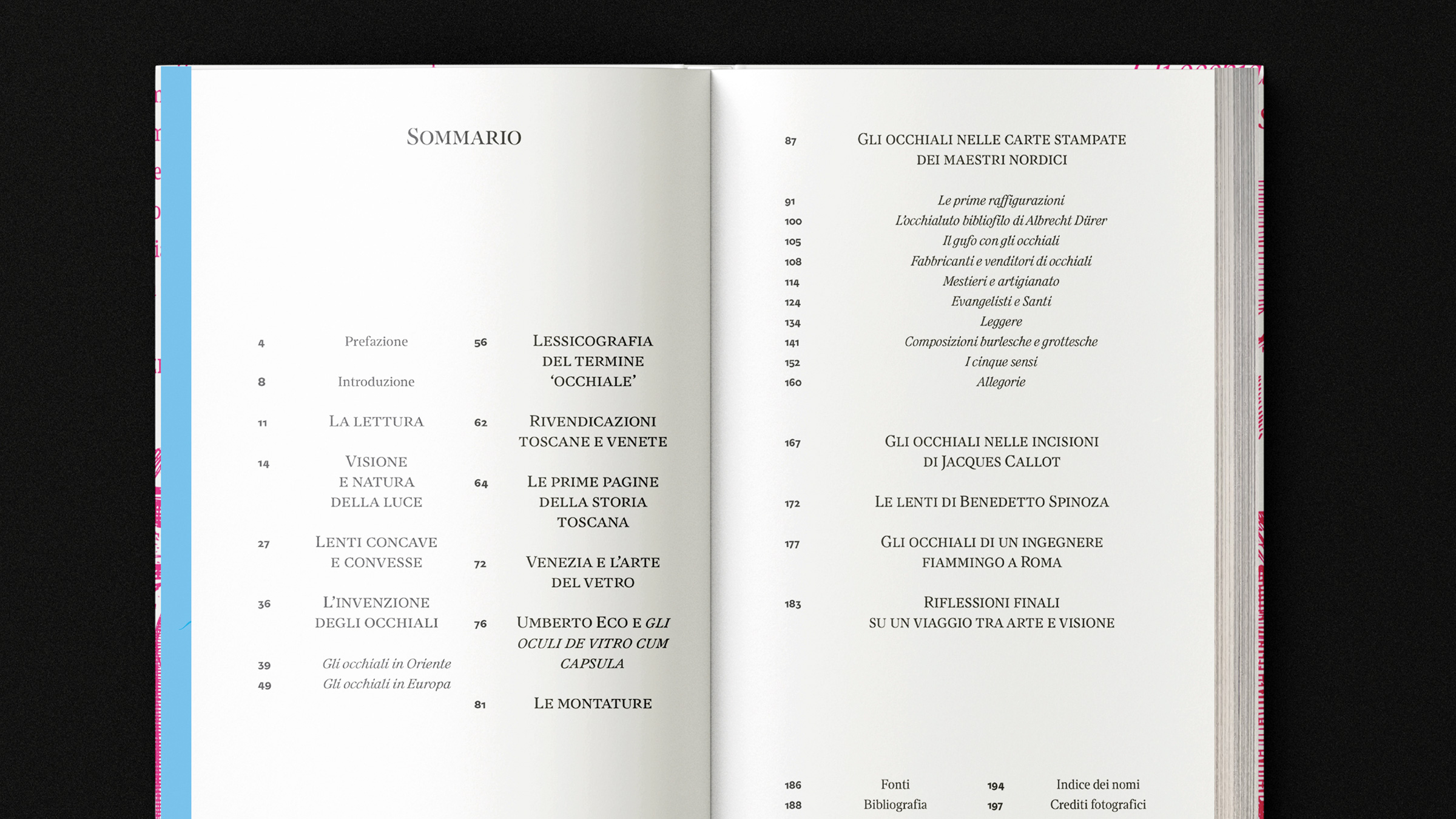 From the history of reading to the first lenses, from frames to the lexicography of the term “eyeglass”, the volume spans centuries of inventions, disputes and symbolic representations. With a preface by Luciano Perondi and Raimonda Riccini , the theme of legibility is intertwined with that of reading tools, while engravings and prints from 1400 to 1700 bring to light what was invisible or forgotten, between utility, art and memory.