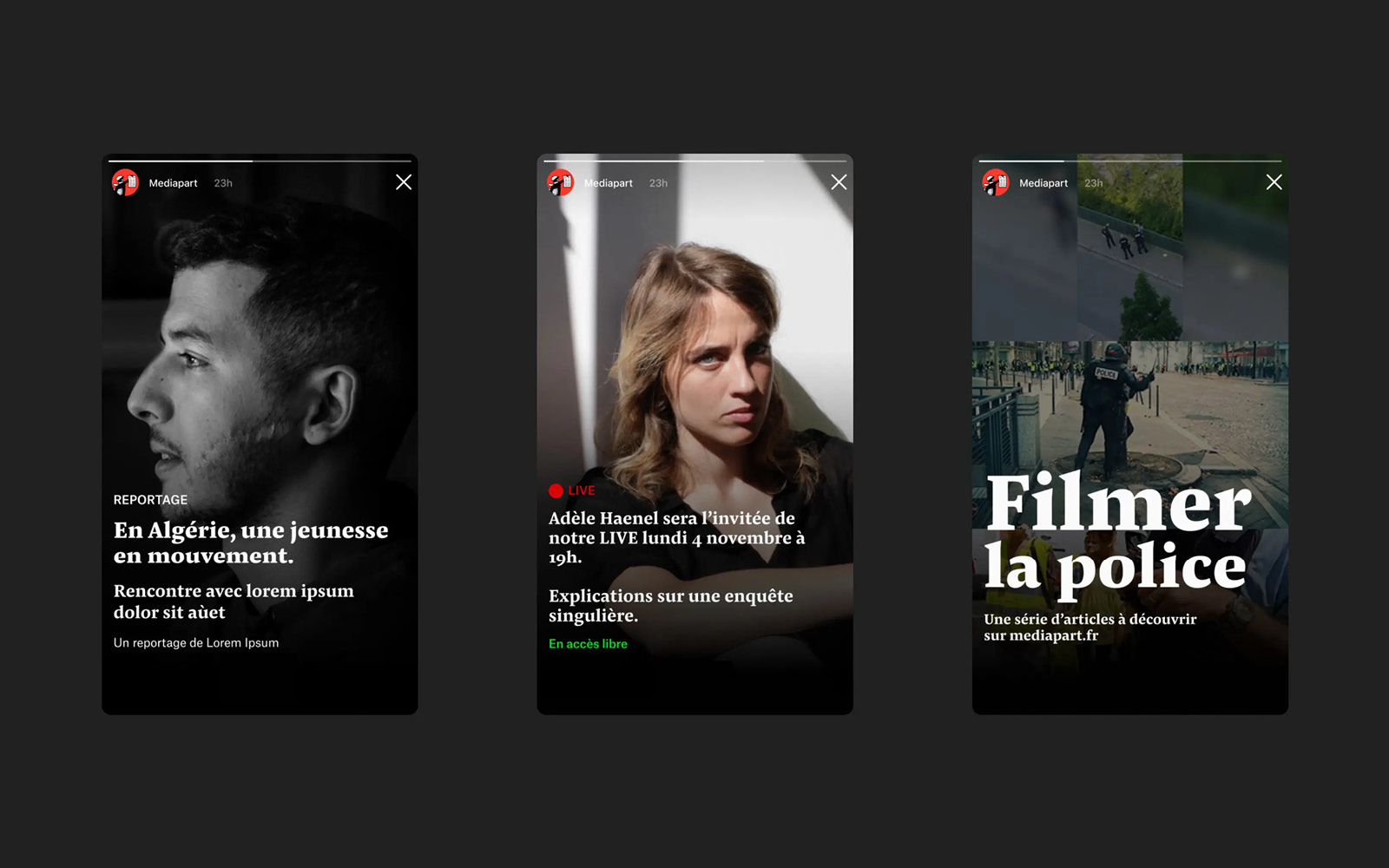 During the redesign of its website and mobile app by cmjnrvb studio, the visual identity was harmonized across editorial content, the user interface, and the subscriber area (the Mediapart Club). A central challenge was differentiating these spaces while maintaining a coherent overall system.