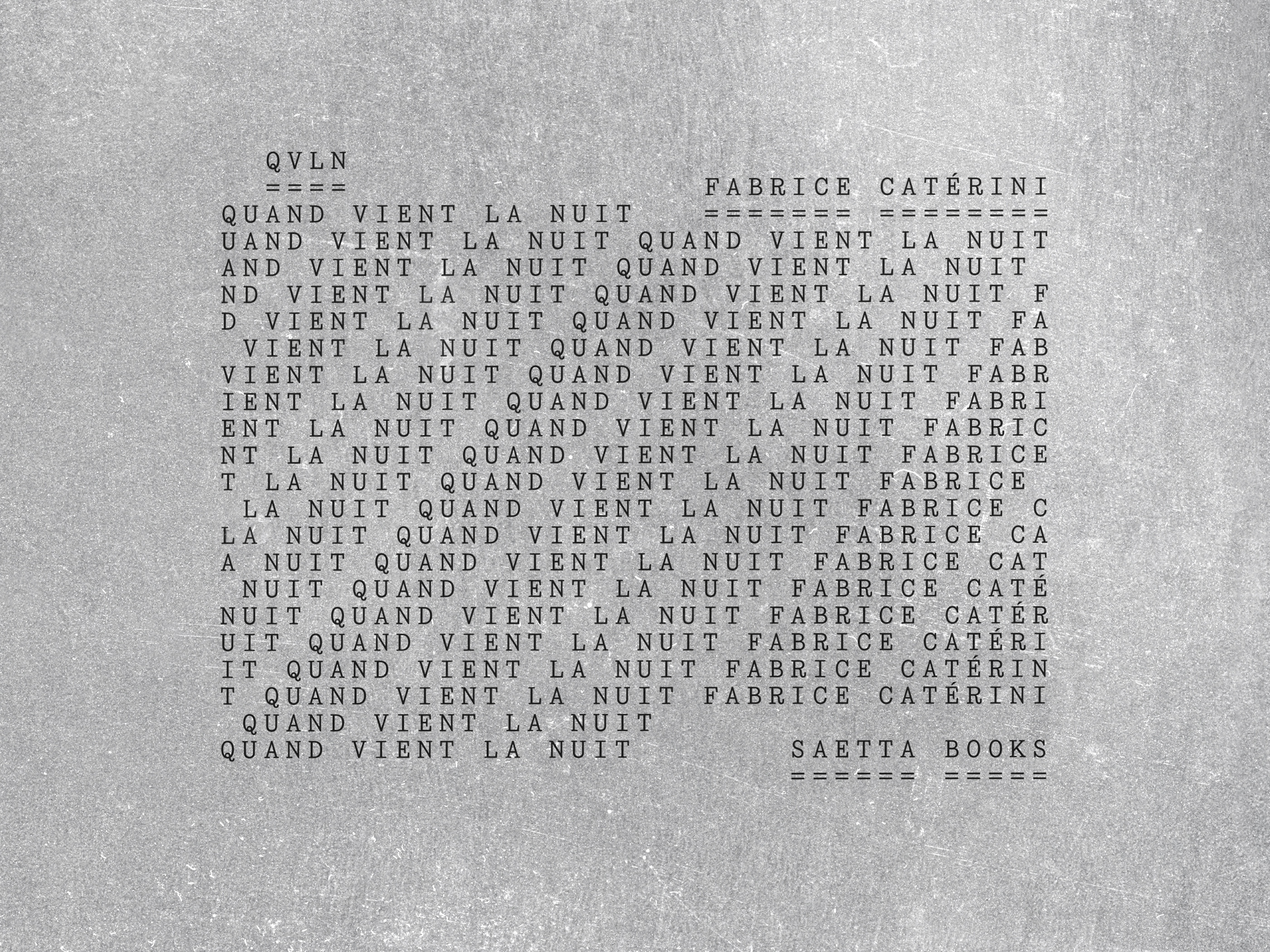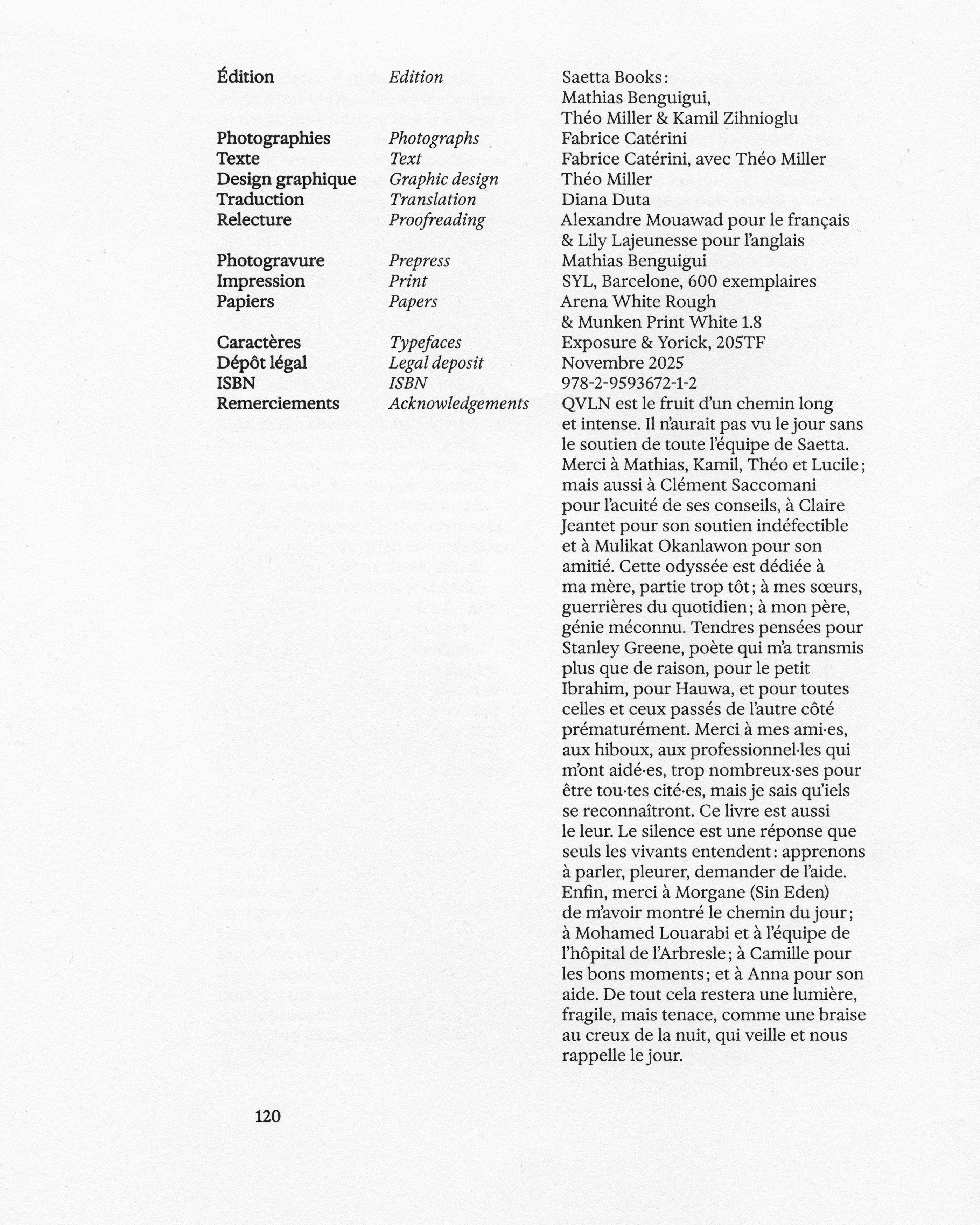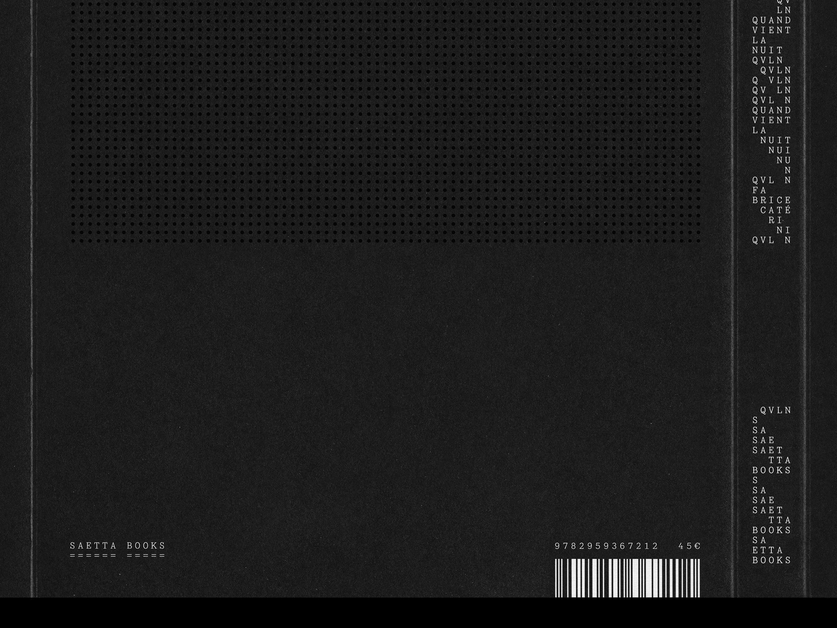 Quand vient la nuit is the first monograph by French photographer Fabrice Catérini. The book was published by Saetta Books in November 2025 and designed by Théo Miller.