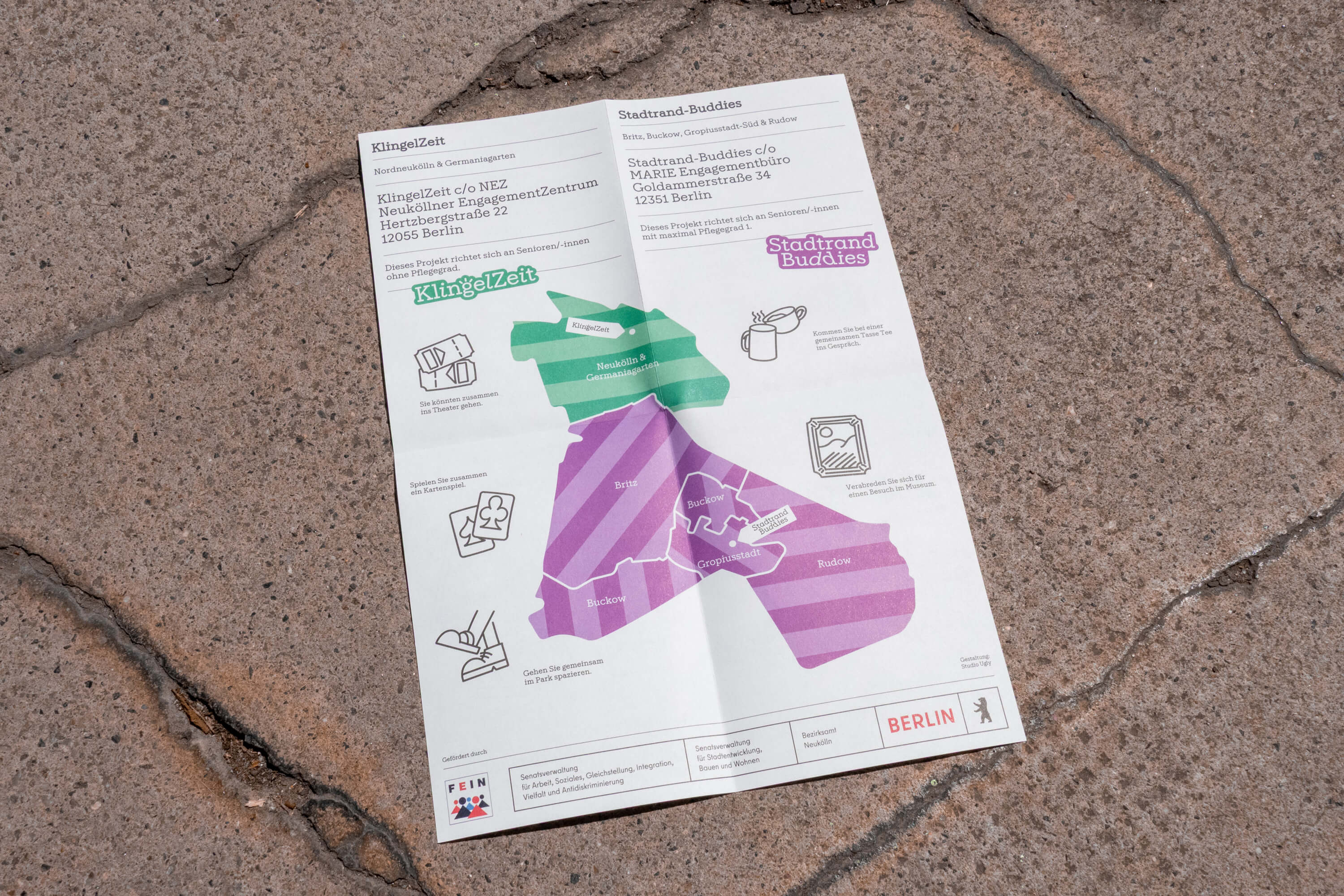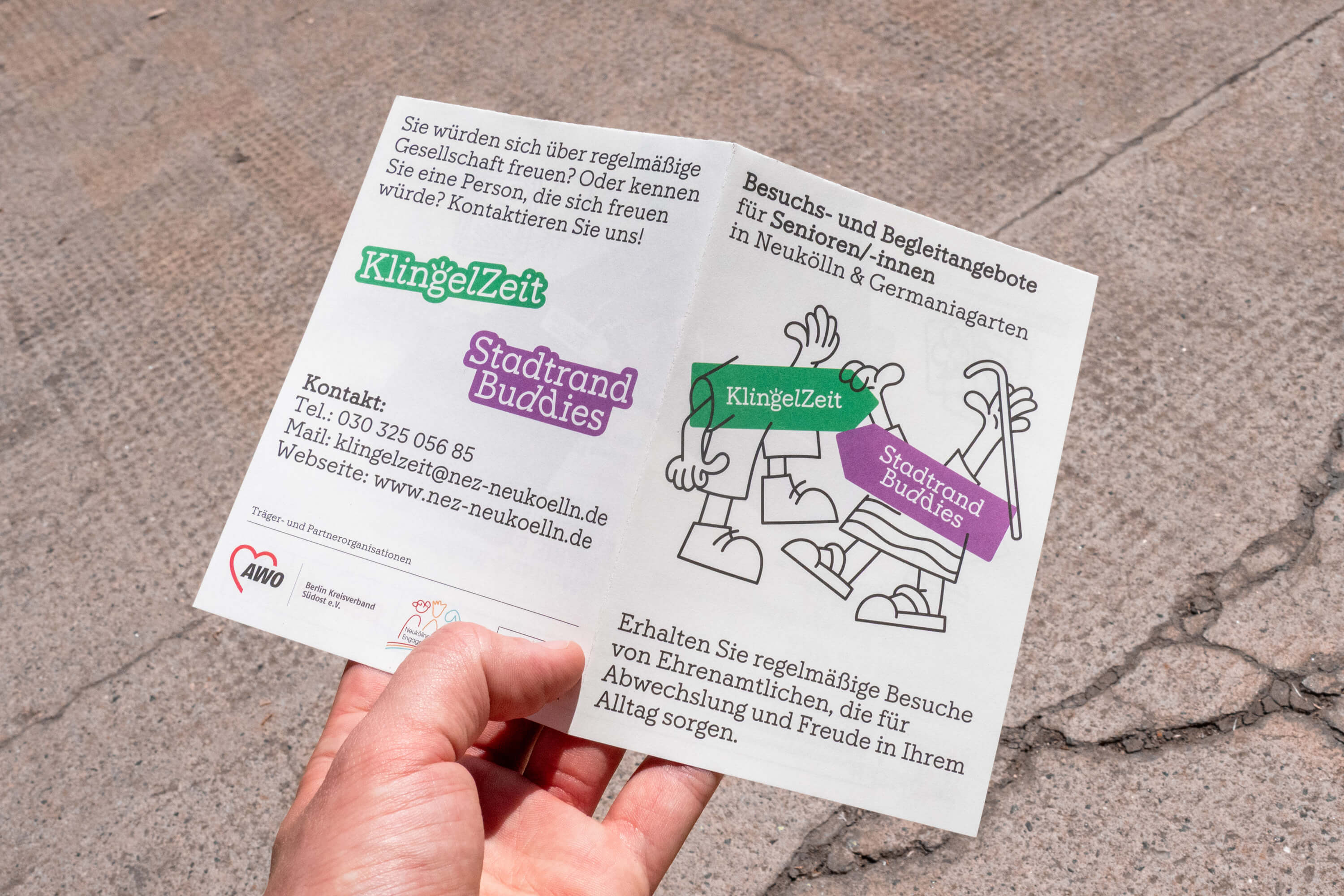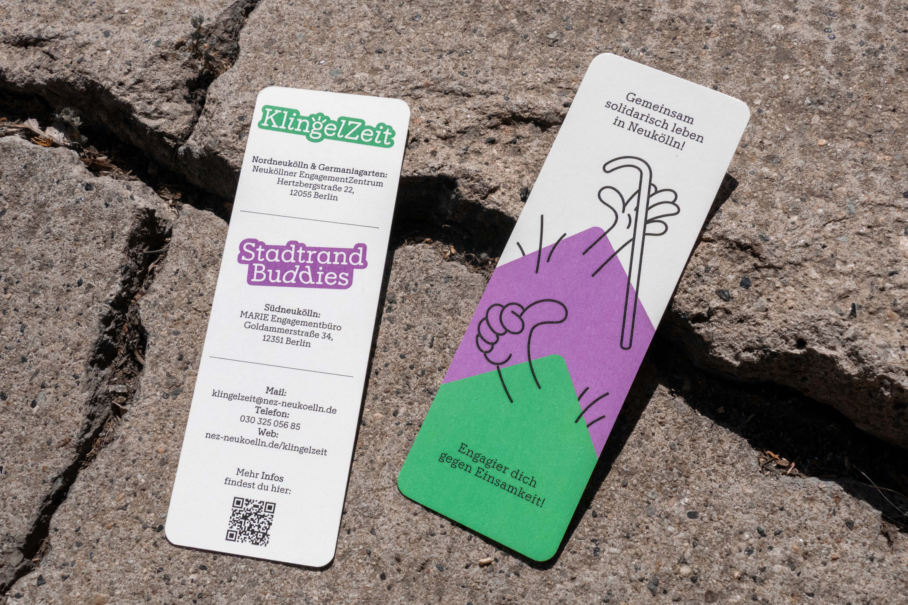 Studio Ugly created the visual identity for the social campaigns Stadtrand-Buddies and KlingelZeit. These two projects were initiated by AWO Berlin Kreisverband Südost and Neuköllner Engagement Zentrum, and aim to help lonely senior citizens in Berlin-Neukölln by supporting sociable activities with neighbors and volunteers.