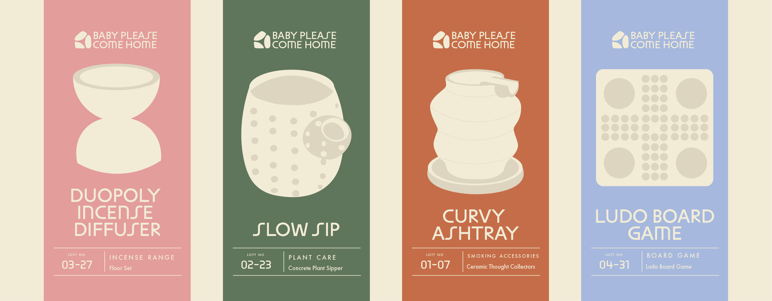 This project uses ABC Maxi Sharp and Futura as the primary typefaces for Baby Please Come Home. ABC Maxi Sharp is used for key brand expressions, bringing a contemporary sharpness and subtle eccentricity that gives the identity character without overwhelming it. Its distinct forms add personality while maintaining structure.