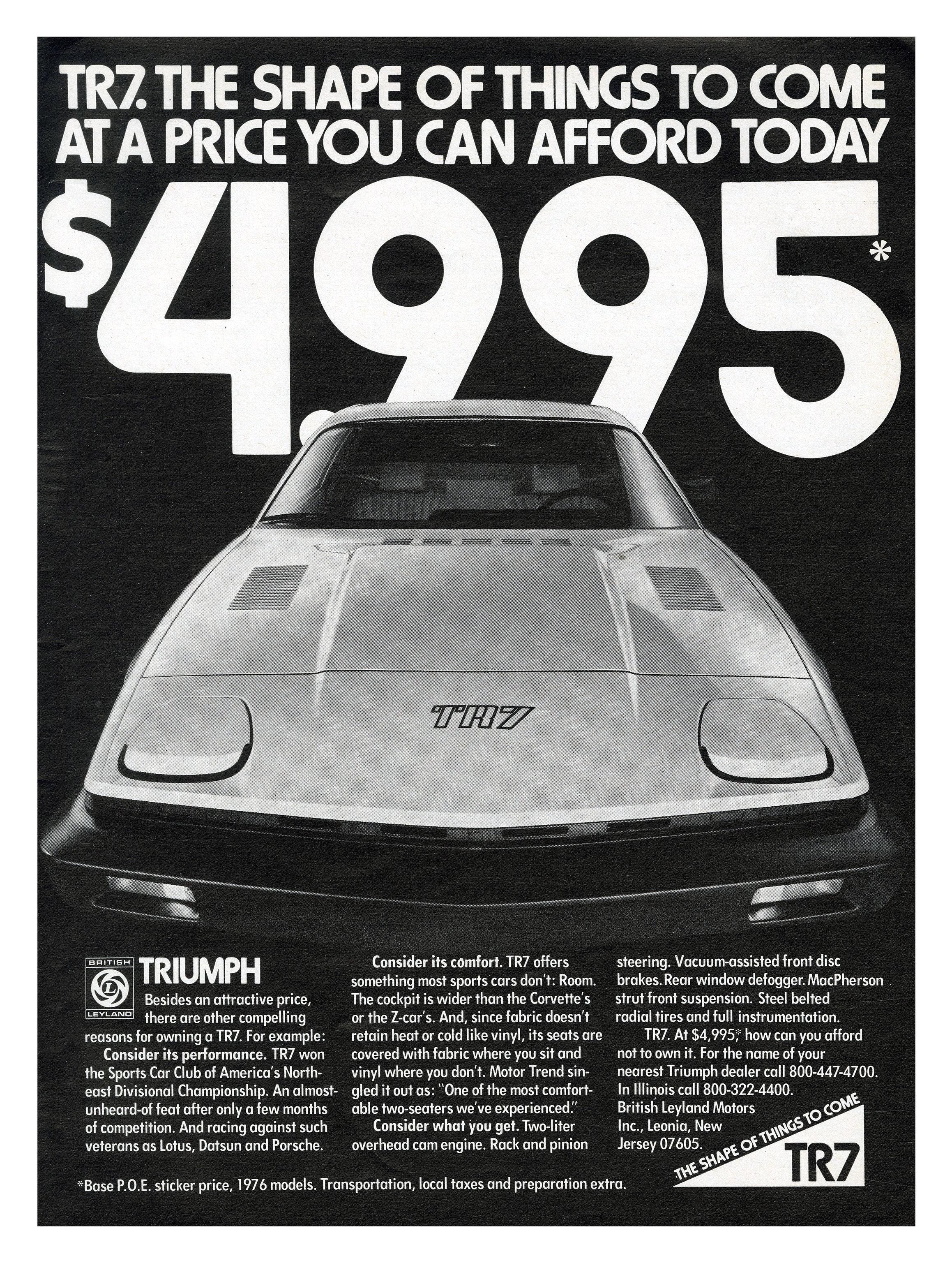 “TR7. The shape of things to come at a price you can afford today”