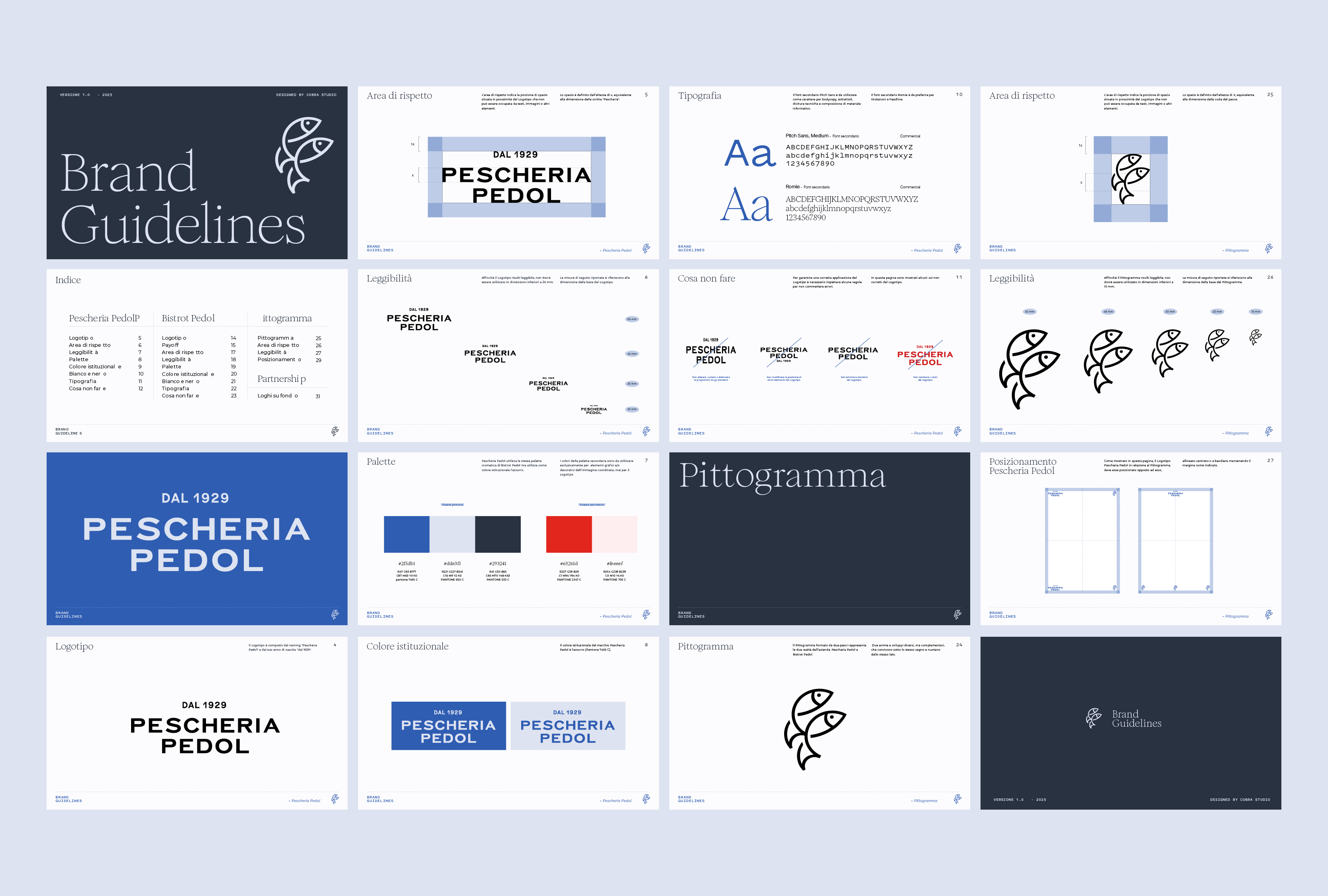 Together with the new pictogram, we have rethought and curated the entire visual image of Pescheria Pedol: an authentic and coherent story, capable of conveying the essence of the company through a contemporary lens.