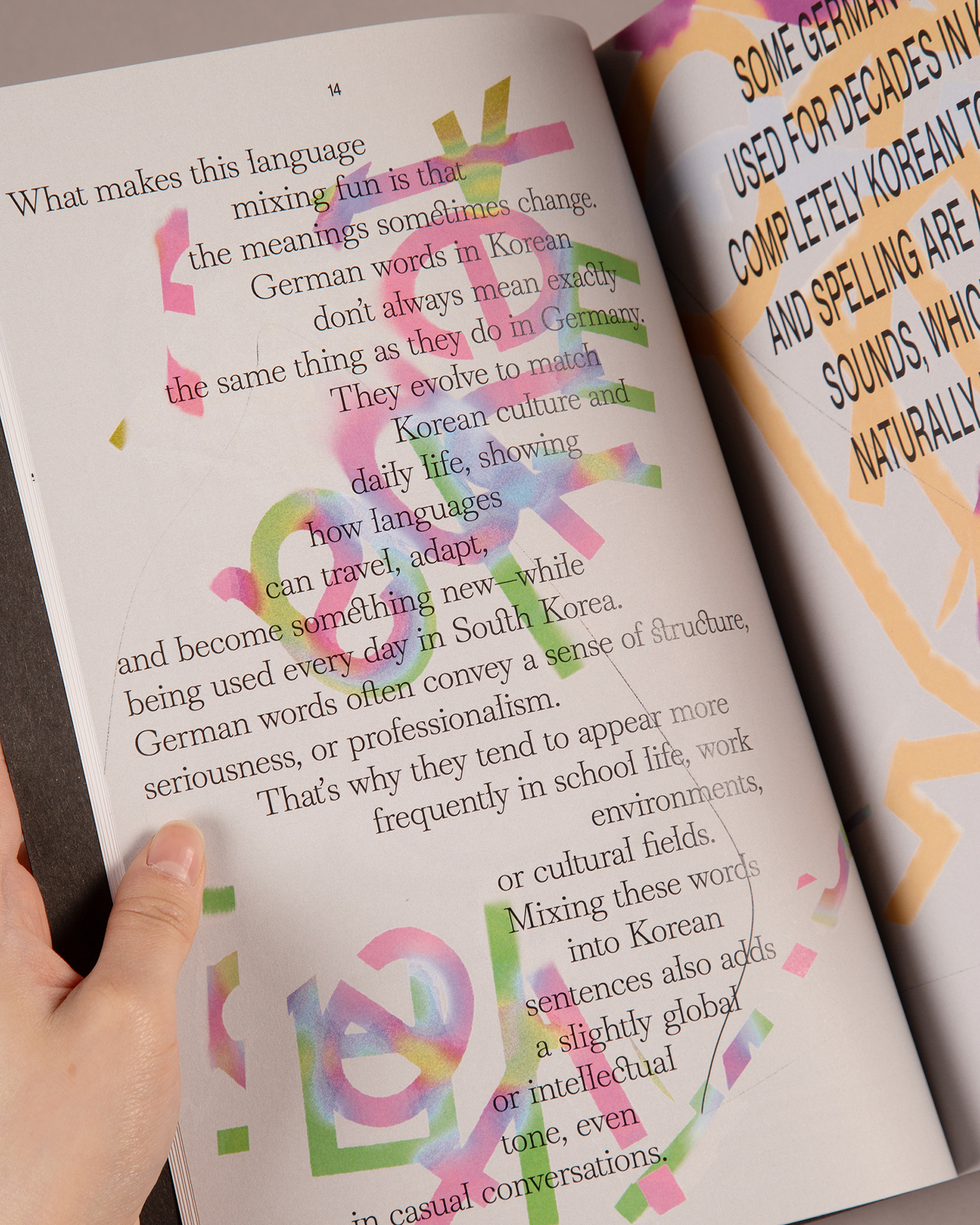 The publication is read from both sides: one presents an Eastern perspective, the other a Western one. Each examines how the other culture’s practices are adopted, influenced, and often misunderstood in different contexts.