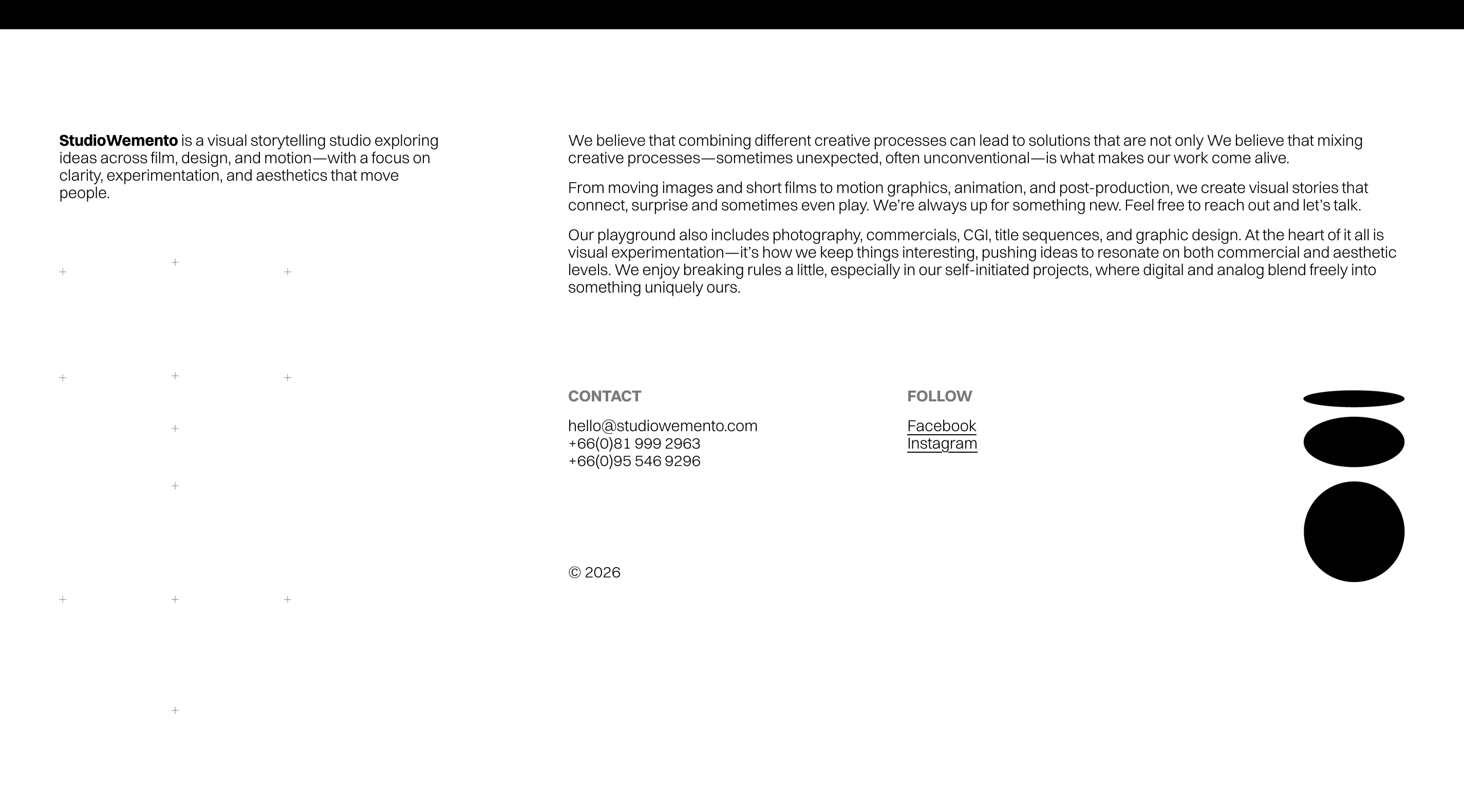StudioWemento is a visual storytelling studio working across film, motion graphics, animation, CGI, photography, and post-production. Based in Thailand, the studio approaches commercial and self-initiated projects alike through a lens of experimentation by blending digital and analog processes, and occasionally breaking the rules.