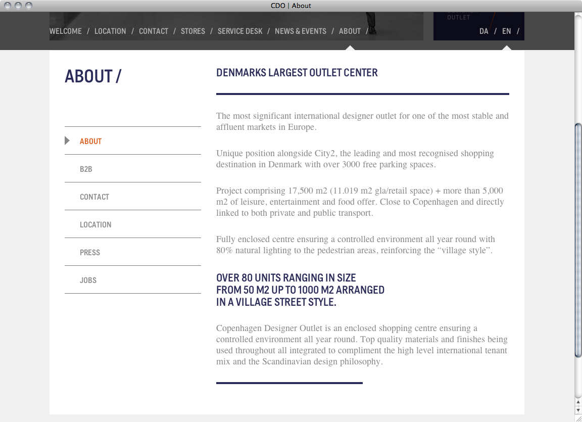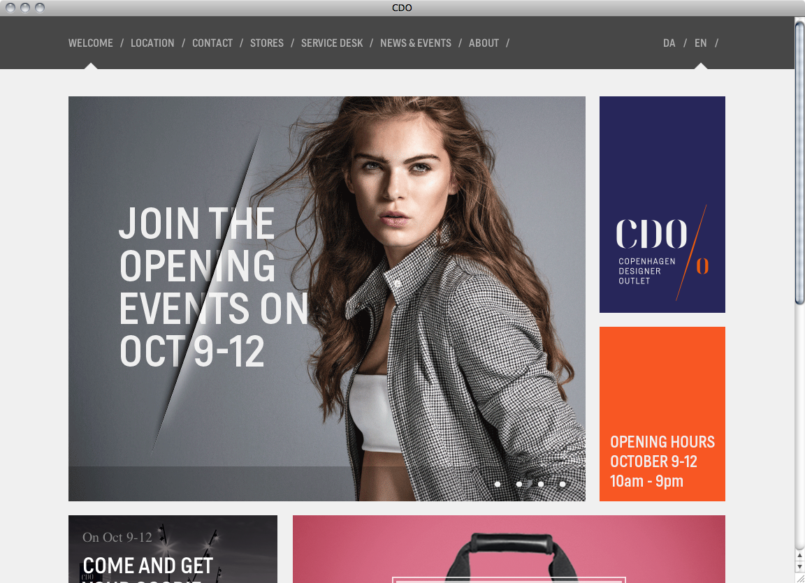 The Copenhagen Designer Outlet is Denmark’s largest outlet center arranged in a village street style and located close to Copenhagen in Taastrup. On the website Helsinki is used exclusively in capital letters (except for time designations) for headlines, sub-headings and text highlighting. It is complemented by Times for continuous text.