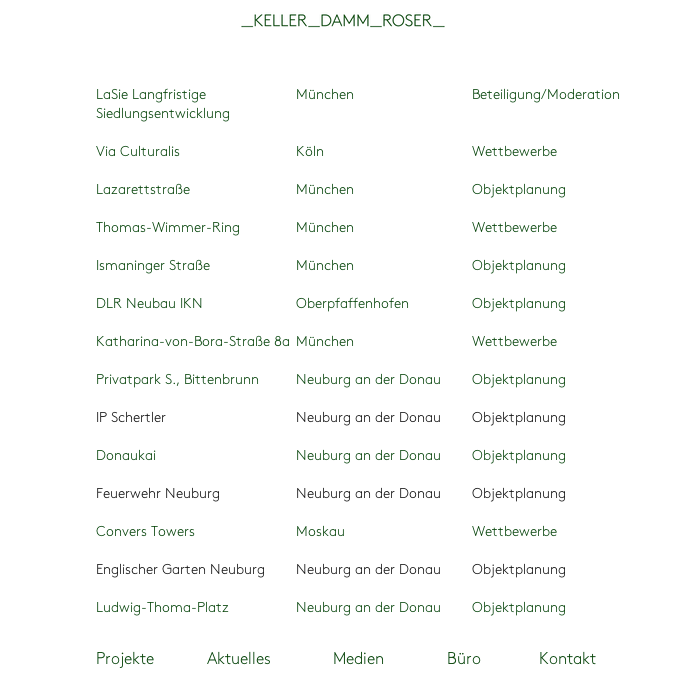 Keller Damm Roser Website Contributed by Manfred Wilhelm on Oct 11th, 2014. Artwork published in 2014. Source: www.keller-damm-roser.de Keller Damm Roser. License: All Rights Reserved. Source: www.keller-damm-roser.de Keller Damm Roser. License: All Rights Reserved. Source: www.keller-damm-roser.de Keller Damm Roser. License: All Rights Reserved. Typefaces More about LL BrownGet LL Brown Formats Web (5638) Topics Architecture (1416) Designers/Agencies Büro Wilhelm (2) Tagged witharchitect (2)portfolios (775)one typeface (1755) Artwork location Germany (3882) München (292) Post a comment Name Email – will not be published Website Your response Submit Comment More LL Brown in use Die Andere Bibliothek – Spring 2013 Preview2013BANK™Contributed by Florian Hardwig Staff Pick Hungryroot Branding2015Language Dept.Tanya QuickJenn CashContributed by Language Dept City Slickers by Other Half & Arizona Wildernessc. 2016Small StuffPhoto(s) by Label Craft on Flickr. Sponsor More in Architecture STADT.WAND.KUNST Corporate Design2020Gestaltung MannheimJuliane GutschmidtStadtWandKunstContributed by Juliane Gutschmidt Lakeside office buildings wayfinding system2024Blank StudioContributed by Alex Slobzheninov The Roncy2017VanderbrandContributed by Vanderbrand In Vivo, Demeurer en mycélium / Living in Mycelium2023Esther Le RoyStudio Le Roy CleeremansSarah CleeremansContributed by Kasper NordkvistBetter Times (Adèle Gallé)(Sample unavailable) More in Web Help Scout brand refresh2023Matt PlaysChristine KimNatalie CowanContributed by Heather Manning Freiheitsfonds2021unknownContributed by Florian Hardwig KIWI Arts Group2020Bright Bright GreatContributed by Hemza Hajyousif afisha.ru2015Anna FrolovaContributed by kmalykh k More Fonts In Use Vogue Singapore, issue 17, “Rebirth”2022Michael HarrisonJason ThienContributed by Arthur Schwarz Staff Pick Google Chrome Introduction Comic2008Scott McCloudContributed by Stephen Coles Staff Pick Endeavor Hills Shopping CentreHofstede DesignContributed by [deleted] Staff Pick Guide d’architecture Paris2008Studio Frederic TacerBenoît SantiardContributed by Indra Kupferschmid Staff Pick