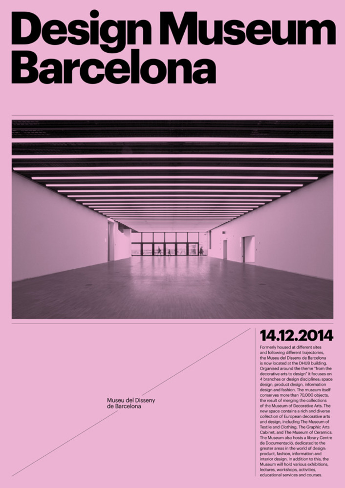 Design by Atlas, the new studio of Astrid Stavro and Pablo Martín, has designed a stellar new identity system for the iconic Museu del Disseny de Barcelona and the Disseny Hub. The identity is reminiscent of the best of modernist design, yet contemporary and original. The largely typographic solution uses Graphik to the fullest.