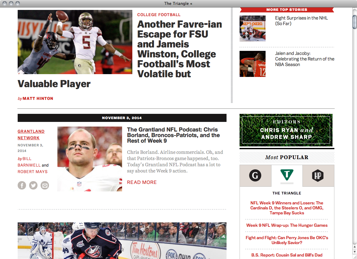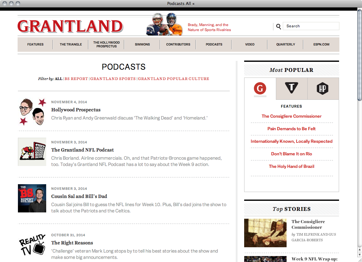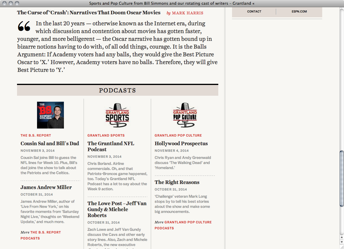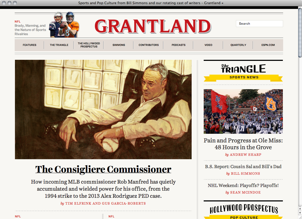 Started by sports journalist Bill Simmons in 2011 Grantland is a sports and pop-culture blog and part of the ESPN network. On the in-house created website Harriet Display for headings and Harriet Text for continuous text are combined with Balto for section headings and small text accentuations.