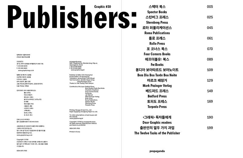 Issue #30 of GRAPHIC features interviews with ten publishing companies, along with information about their books. These companies are all small-scale, independent, and not especially commercial. The books they publish are also different from the typical art fare. Simply put, they aren’t like the commercial publishers that depend on economies of scale and mass marketing.