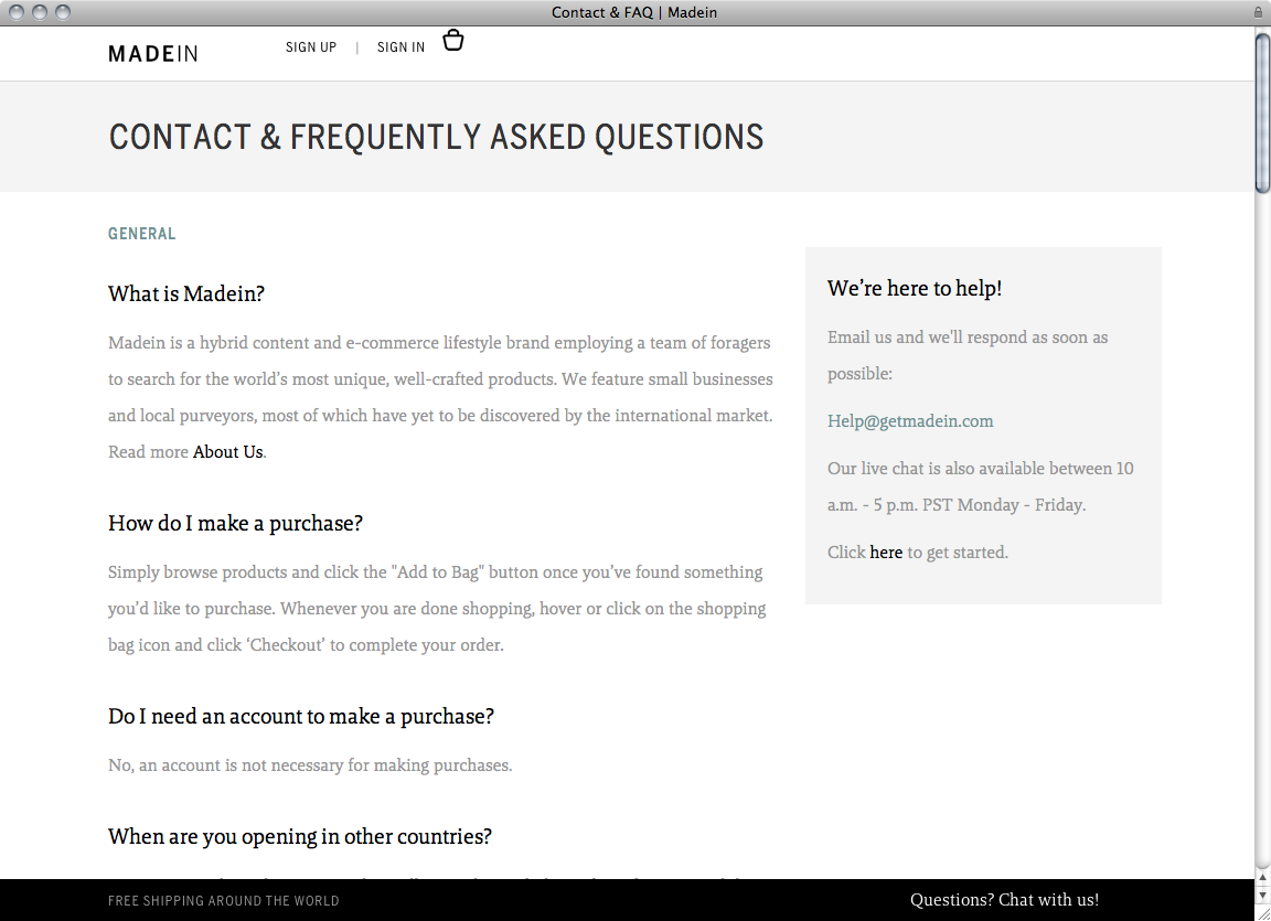 Madein is an online store that offers selected products from small Japanese businesses and local purveyors. On the website Benton Sans is used in condensed and in capitals for section headings and navigation complementing Brando for headlines, subheadings and continuous text.