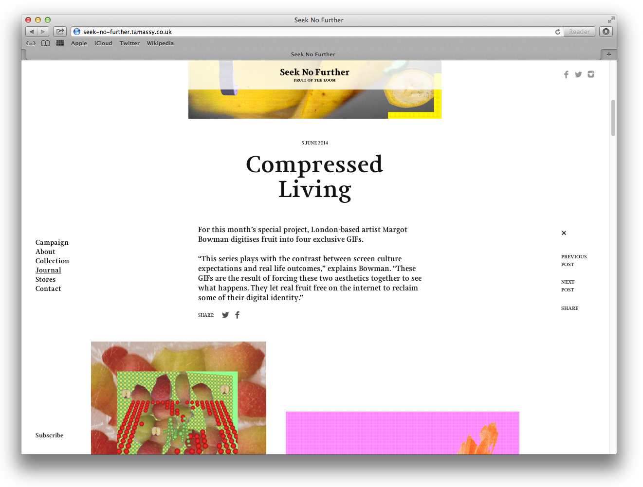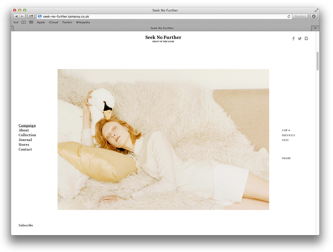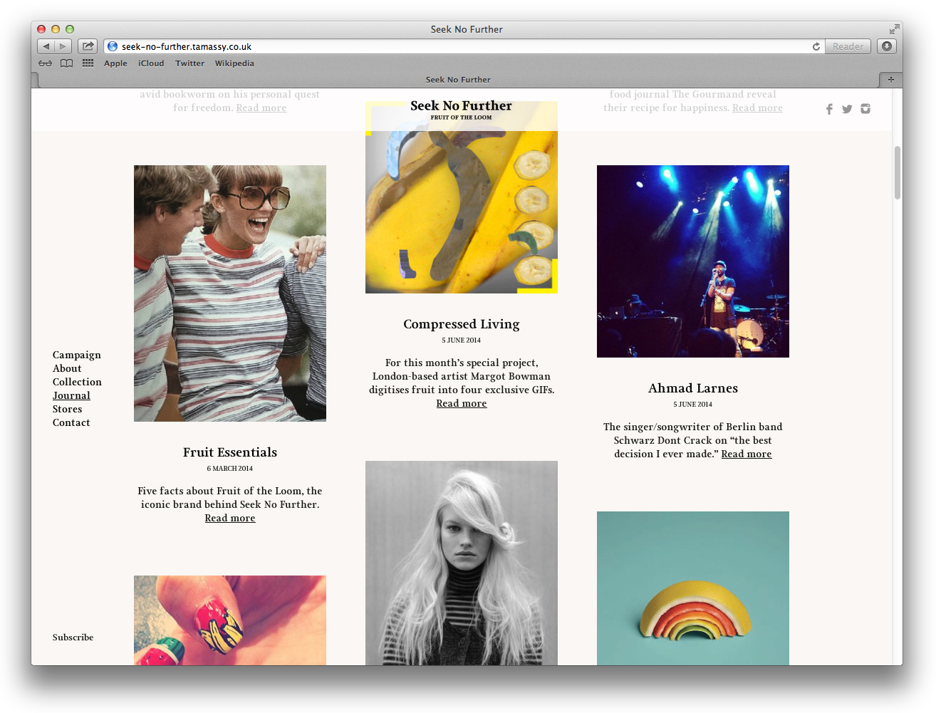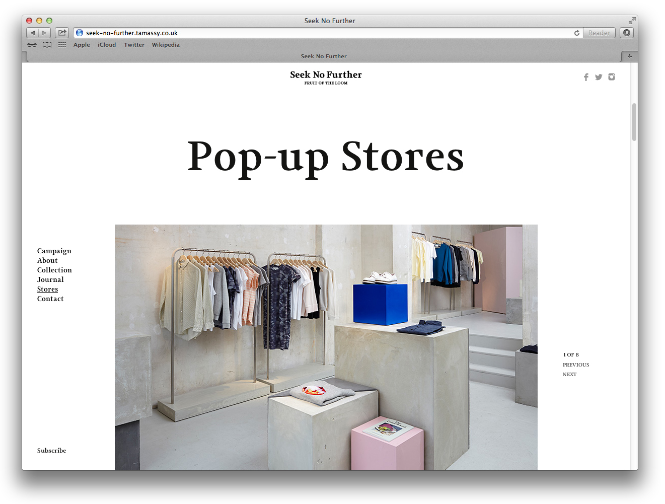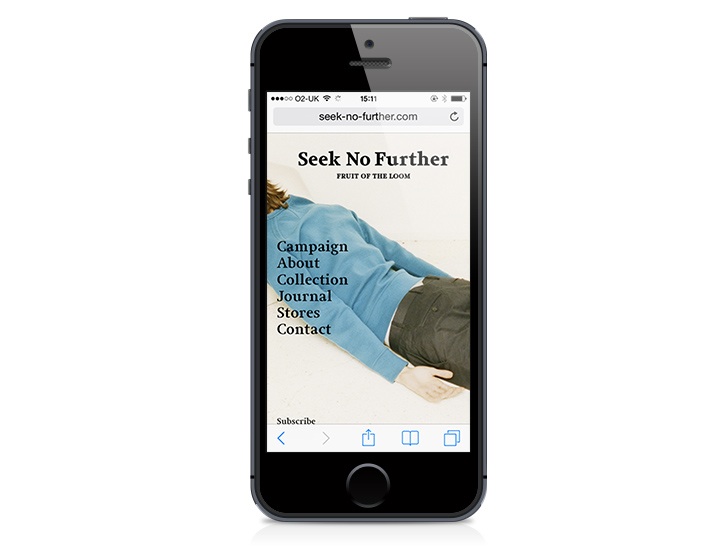 Seek No Further Contributed by Gareth Hague on Dec 8th, 2014. Artwork published in 2014. Source: static.digitalinsightresearch.in © 2014 FRUIT OF THE LOOM, LTD. License: All Rights Reserved. Seek No Further was a pop-up new label from sportswear manufacturer Fruit of the Loom, launched for 6 months only. Source: www.dezeen.com © 2014 FRUIT OF THE LOOM, LTD. License: All Rights Reserved. Source: retaildesignblog.net © 2014 FRUIT OF THE LOOM, LTD. License: All Rights Reserved. © 2014 FRUIT OF THE LOOM, LTD. License: All Rights Reserved. Source: seek-no-further.tamassy.co.uk © 2014 FRUIT OF THE LOOM, LTD. License: All Rights Reserved. Source: seek-no-further.tamassy.co.uk © 2014 FRUIT OF THE LOOM, LTD. License: All Rights Reserved. Source: seek-no-further.tamassy.co.uk © 2014 FRUIT OF THE LOOM, LTD. License: All Rights Reserved. Source: seek-no-further.tamassy.co.uk © 2014 FRUIT OF THE LOOM, LTD. License: All Rights Reserved. Source: www.tamassy.co.uk © 2014 FRUIT OF THE LOOM, LTD. License: All Rights Reserved. Source: www.tamassy.co.uk © 2014 FRUIT OF THE LOOM, LTD. License: All Rights Reserved. Typefaces More about JudeGet Jude Formats Branding/Identity (8299) Topics Fashion/Apparel (1524) Designers/Agencies Tamassy (1) David James Associates (4) Tagged withFruit of the Loom (1)fashion labels (154) Artwork location United Kingdom (3237) London (1792) In Setssmooth (Karo Konieczna) (524)Elegant (obr yoon) (175)Alias_Fashion (Gareth Hague) (23) Post a comment Name Email – will not be published Website Your response Submit Comment More Jude in use Scout gallery reception desk2004Martin JacobsContributed by Gareth Hague Shaping the World by Antony Gormley and Martin Gayford2020Thames & HudsonContributed by Gareth Hague Scout galleryMartin JacobsContributed by Gareth Hague Sponsor More in Fashion/Apparel W magazine vol. 5, September 2019, “Fashion Now”2019Cian BrowneJeff BurchContributed by Production Type Staff Pick Keep Going collection from Everytown2016unknownContributed by Stephen Coles Esquire and Condé Nast Traveler2011Contributed by André Mora Blog Sara Julián brand identityc. 2021IF ConceptContributed by F37® More in Branding/Identity G&S&2023The Stone TwinsStuurmenRamiro EspinozaContributed by WELTKERN® Typefaces Domaine les Castans2021Studio AsensòContributed by Production Type Parmizza2023unknownContributed by Nguyen Gobber dr.blet2021Kwangmyung LimHyeonmo KimEuisung HwangContributed by kim hyunmo More Fonts In Use Mickey & JohnnyDavid McFarlineArchiveContributed by Stephen Coles Staff Pick TIME magazine, “The Gun in America” (1968, 1998, ?)1968Roy LichtensteinContributed by Florian Hardwig Staff Pick The Never Taken Images by F&D Cartierc. 2022Balmer HählenContributed by newglyph Staff Pick Draft House Pubsc. 2009Studio FrithContributed by Gareth Hague Staff Pick