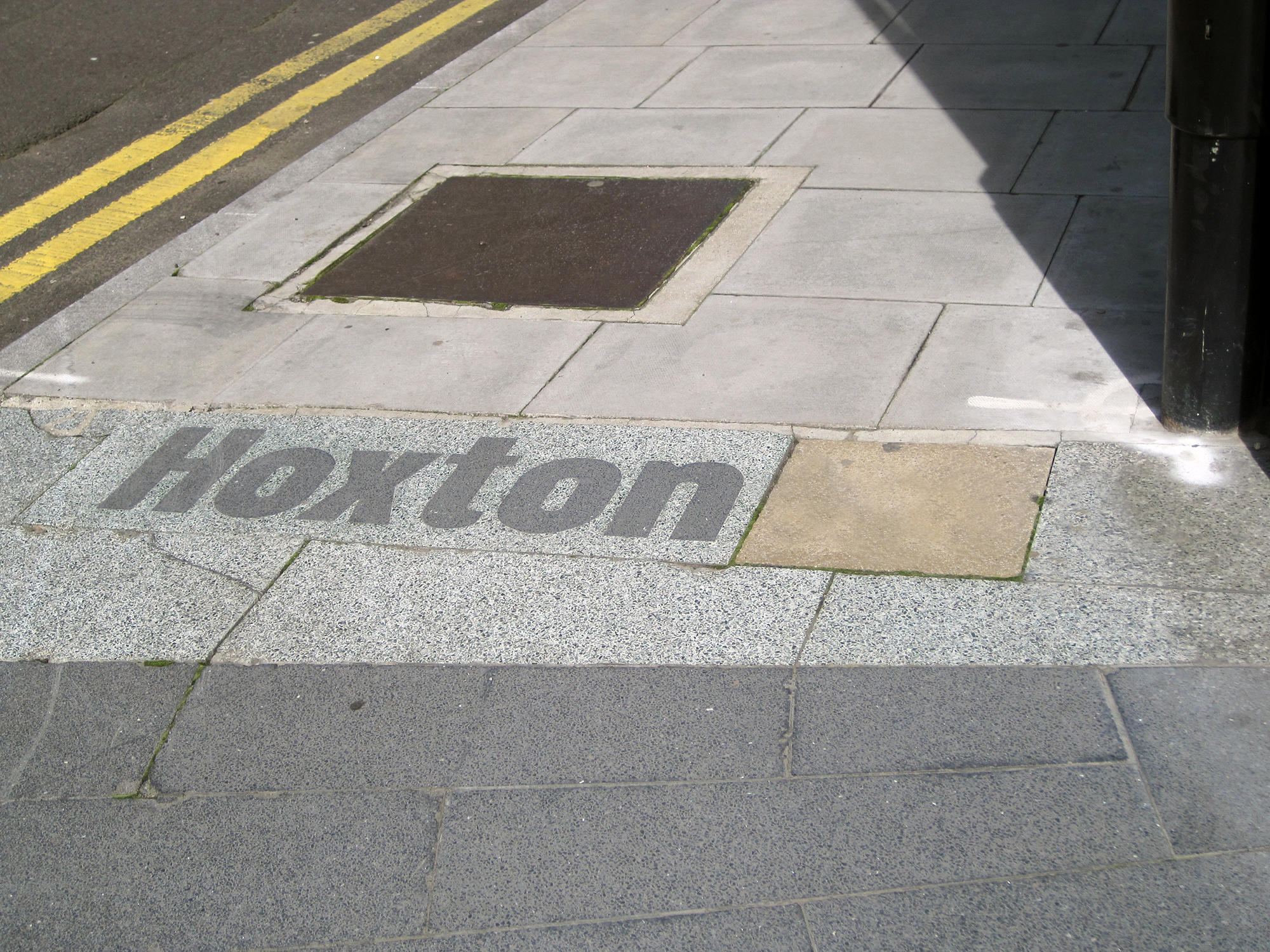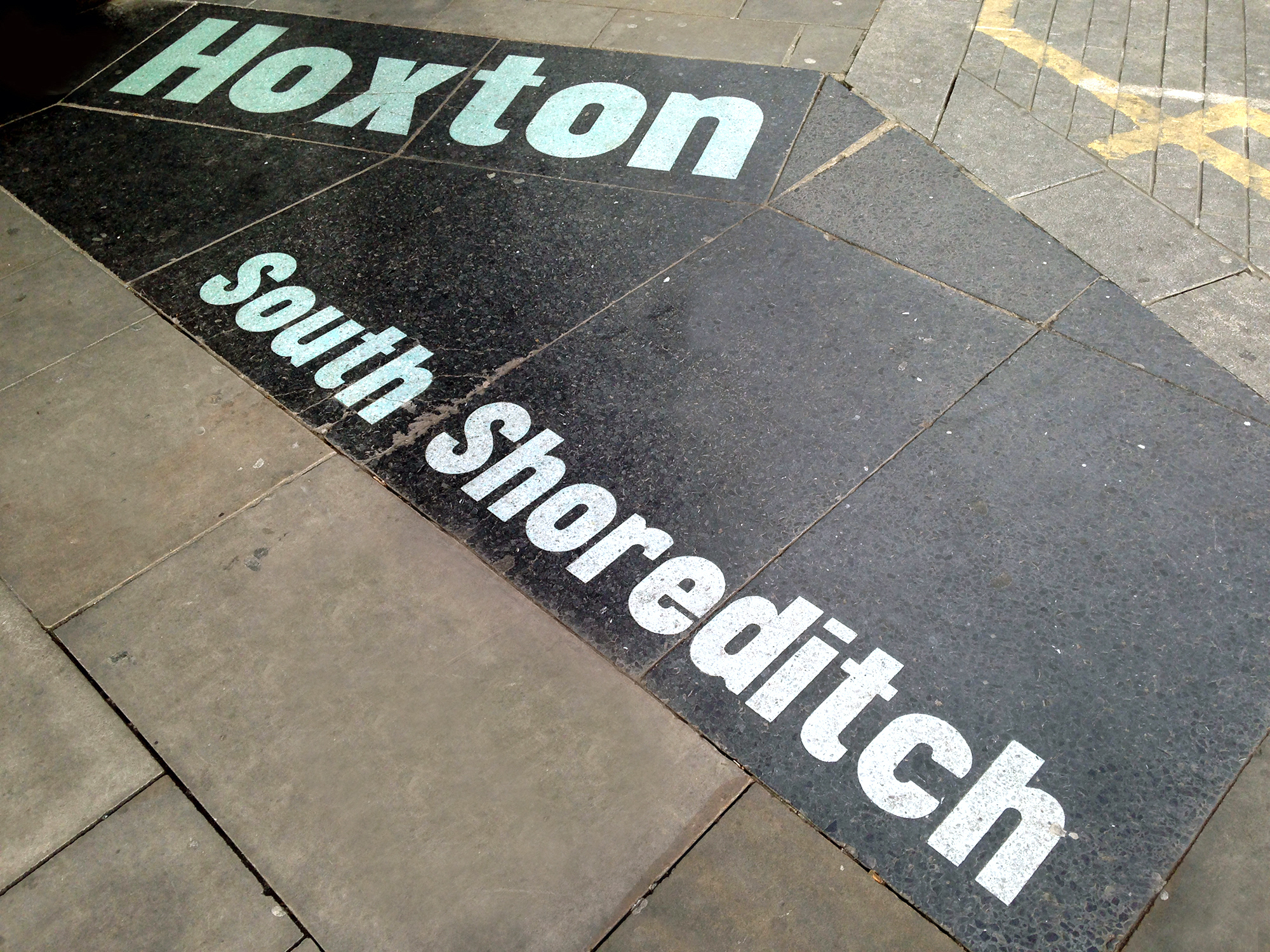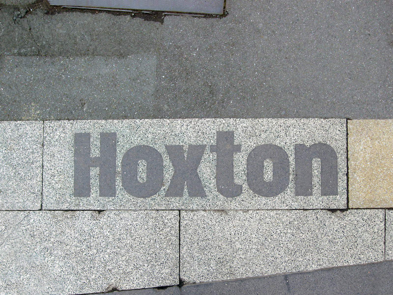 Hoxton & South Shoreditch boundary signs Contributed by Gareth Hague on Jan 29th, 2015. Artwork published in 2005. Source: www.flickr.com License: All Rights Reserved. Cast terrazzo boundary signs from around Hoxton and South Shoreditch, east London. Set in Alias Elephant Black type, probably installed around 2005. Designed possibly by Paul Elliman. Source: www.flickr.com Will Plant. License: All Rights Reserved. Source: www.flickr.com Jasper M. License: All Rights Reserved. Gareth Hague. License: All Rights Reserved. Gareth Hague. License: All Rights Reserved. Typefaces More about Elephant (Alias)Get Elephant (Alias) Formats Signs (2182) Infographics/Maps (569) Topics Local (1623) Transportation (341) Designers/Agencies Paul Elliman (1) Tagged withsigns (672)reversed type (3456)pavement (3)type on the ground (88) Artwork location United Kingdom (3333) London (1847) In SetsInterface (Matthijs Sluiter) (107)Gareth favourites (Gareth Hague) (60)Alias_Signs (Gareth Hague) (27) Post a comment Name Email – will not be published Website Your response Submit Comment More Elephant (Alias) in use Parky Life2019Ollie HurstContributed by Gareth Hague UAU! ice cream2019Auge DesignContributed by Gareth Hague Sign for Cycling campaign2016MultiAdaptorContributed by Gareth Hague Staff Pick Sponsor More in Local Canton of Bern corporate design (2020)2020NoordJonny WüthrichContributed by Nikolai Arnaudov Anecdote, Myth & Hyperbole: Texas, from A to Z.2019Dossier IndustriesAnnette DennisContributed by Annette Dennis Staff Pick Norway Passport (2014 winning proposal)2014NeueContributed by Stephen Coles Staff Pick Laurin & Klement memorial, Mladá Boleslavc. 2005Michal MoravecContributed by Christopher Bentley More in Signs KØBc. 2014Lucas Dino NoltePaul ArnoldtMax PohlenContributed by Frode Helland (Monokrom Skriftforlag) Bistrot Zinc1998unknownContributed by Stephen Coles The Dog Wellness Centre2018Studio WorkContributed by STUDIO WORK Staff Pick Art In Progress_3: Velcro Adorables2022Claudia DraghiaSebastian PrenContributed by Claudia Draghia More Fonts In Use Stefan Zweig series (Pushkin Press)c. 2012Nathan BurtonContributed by Florian Hardwig Staff Pick I am a book. I am a portal to the universe.2020Stefanie PosavecMiriam QuickContributed by Frank Grießhammer Staff Pick Houstonia, May 20132013Chris SkilesContributed by Chris Skiles Staff Pick François Hollande 2012 Presidential Campaign2012Contributed by Underware Staff Pick