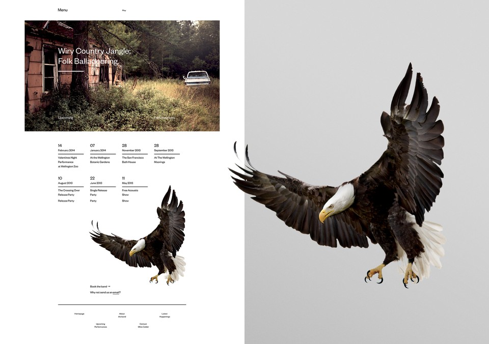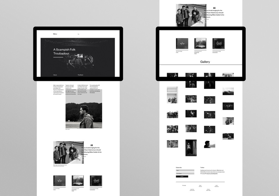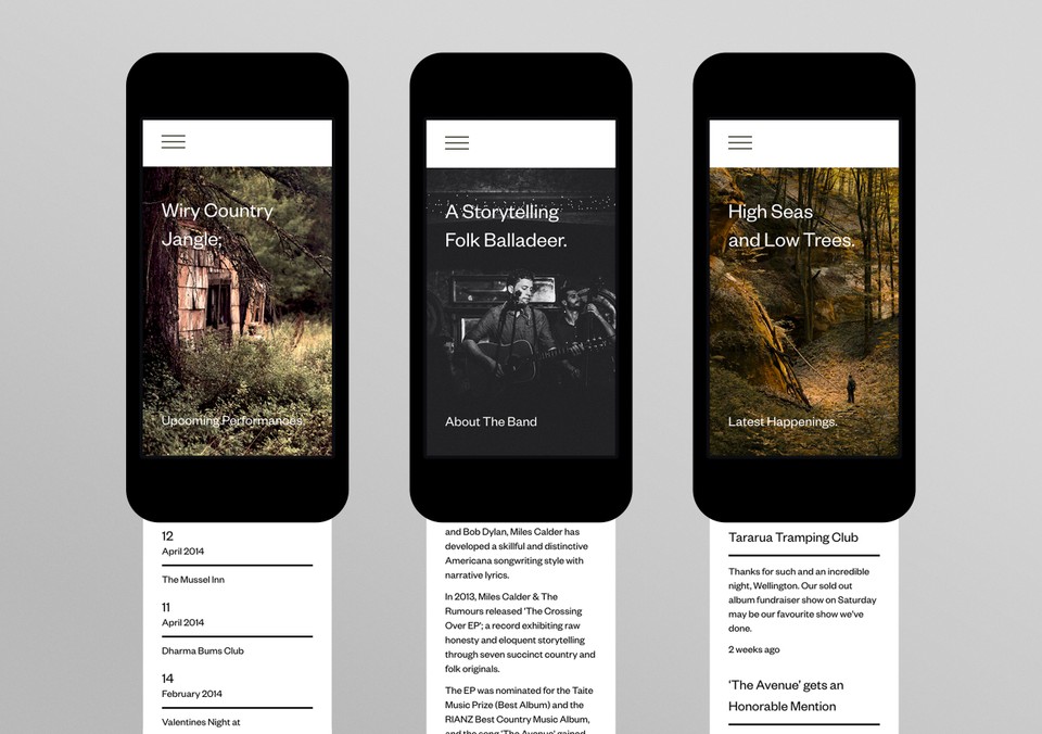 Miles Calder & The Rumours website Contributed by Nick de Jardine on Dec 16th, 2014. Artwork published in 2014. Photo: Nick de Jardine. License: All Rights Reserved. Website for Miles Calder & The Rumours Photo: Nick de Jardine. License: All Rights Reserved. Photo: Nick de Jardine. License: All Rights Reserved. Photo: Nick de Jardine. License: All Rights Reserved. Photo: Nick de Jardine. License: All Rights Reserved. Photo: Nick de Jardine. License: All Rights Reserved. Typefaces More about Founders GroteskGet Founders Grotesk Formats Web (5626) Mobile/Tablet (1023) Topics Music (6366) Designers/Agencies Grafik (23) Tagged withwebfonts (449)Miles Calder & The Rumours (3)band/musician websites (15) Artwork location New Zealand (185) In Setsgrotesque (Annika Weller) (5) Post a comment Name Email – will not be published Website Your response Submit Comment More Founders Grotesk in use SailGP2018GBHOur FriendsContributed by Matthew Caldwell Hakata Maru Ramen2019Harley Johnston DesignContributed by Harley Johnston Smithsonian magazine table of contents (1989 & 2013)2013Bradbury ThompsonMaria KeehanErik WashamContributed by Chris Purcell Sponsor More in Music Room for Rebellion2017Alex McCulloughContributed by henry cruickshank Underground Resistance – Interstellar Fugitives album art1998Abdul HaqqChuck GibsonFranky FultzContributed by Nathan Prost Staff Pick Tome of the Crystal Wizard –Iagon2018unknownContributed by Timothée Goguely Ten Oliver – “Verlorene Liebe” / “Bonnie” single cover1965Klaus VonderwerthContributed by Florian Hardwig More in Web Susanne Kriemann2014Modem StudioContributed by Modem Studio Engineers and Geoscientists British Columbia2017Twice (DDB Canada)Contributed by Emtype Foundry sava.io2020Alina SavaContributed by Arne Sava Emma Willard’s Maps of Time minisite2020Pavel KedzichContributed by Pavel Kedzich More Fonts In Use Die verlorenen Welten des Zdenek Burian by Judith Schalansky (ed.)2013Judith SchalanskyContributed by Florian Hardwig Staff Pick Las Vegas poster for TWAc. 1968David KleinContributed by Florian Hardwig Staff Pick Pasta Social Club 2c. 2021Giulia BoggioContributed by Giulia Boggio Staff Pick Dark Mofo2019Megan PerkinsDark MofoJames FreebairnContributed by Two Points Staff Pick
