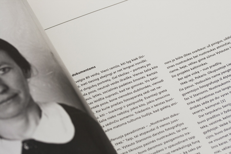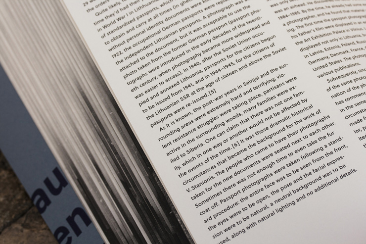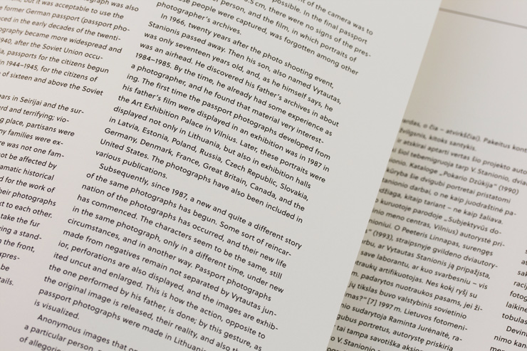 Berlin based book designer Tom Mrazauskas created this beautiful publication, crafted with special attention to detail. He chose Soleil, by Wolfgang Homola, as the main typeface and Pitch, by Kris Sowersby. Every image was visually cut into half by folding the pages, avoiding repetition. The duo-tone plates were printed on thin uncoated stock. Published by Kaunas Photography Gallery in 2013 the book has received several awards.
