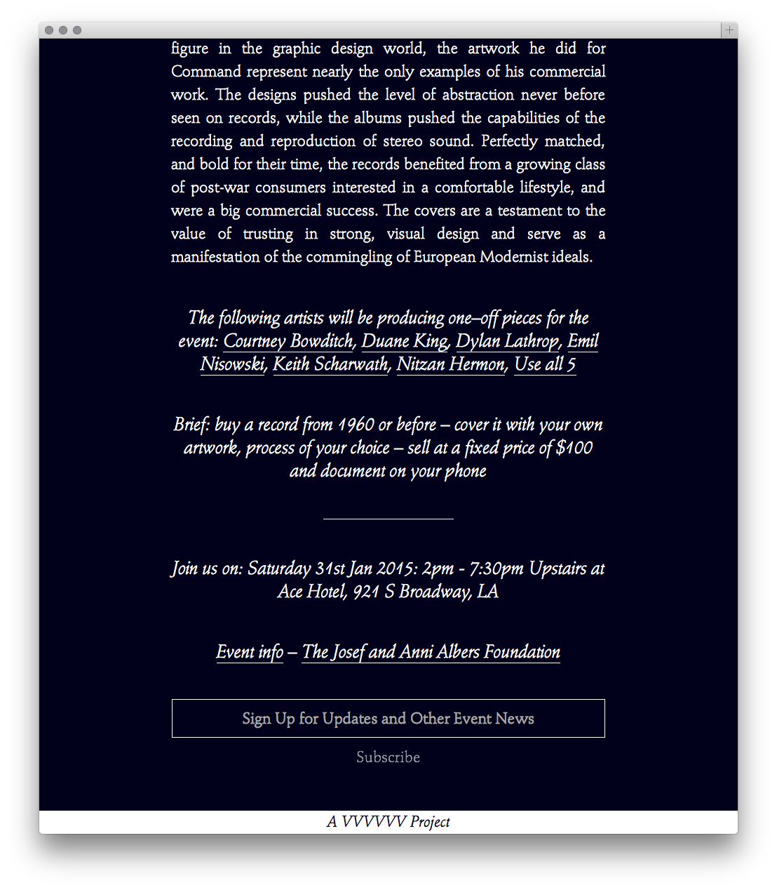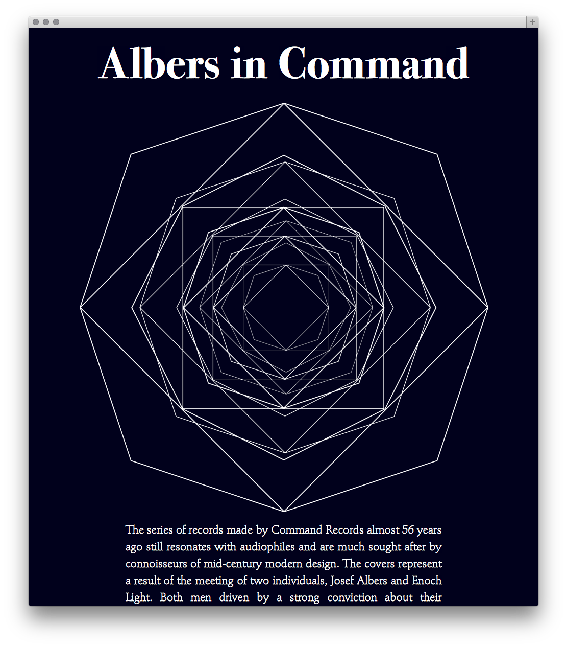 Albers in Command is a small site with a very unusual type choice – Stempel Schneidler Mediäval – in an even stranger combination with ITC Bodoni; a small site for an event in memory of a series of album covers for Command Records by Josef Albers and others from 56 years ago. (You see that I didn’t fully understood myself what it is. I just wanted to post this because of Schneidler.)