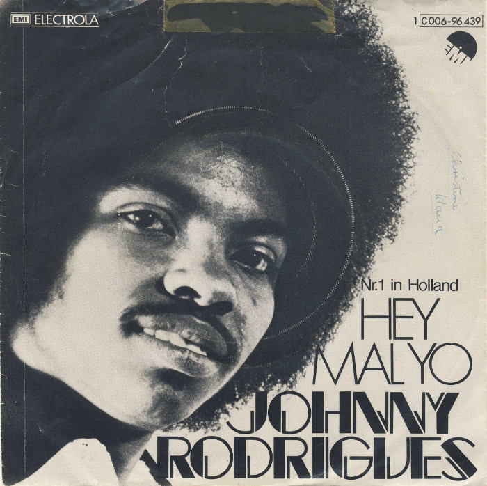 Johnny Rodrigues’ number-one hit “Hey mal yo” was the first single made by a Cape Verdean to reach the Dutch charts. On the German release by EMI Electrola, his name is set in Roco, a Letraset face issued in 1973, and the only published typeface design by Collis Clements — musical one-hit wonder meets typographic one.