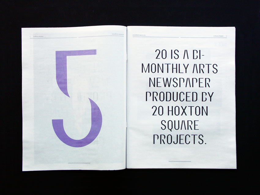 20 is a free newspaper by 20 Hoxton Square Gallery. Distributed around London, the paper contains the gallery’s latest exhibited artists’ interviews and work.