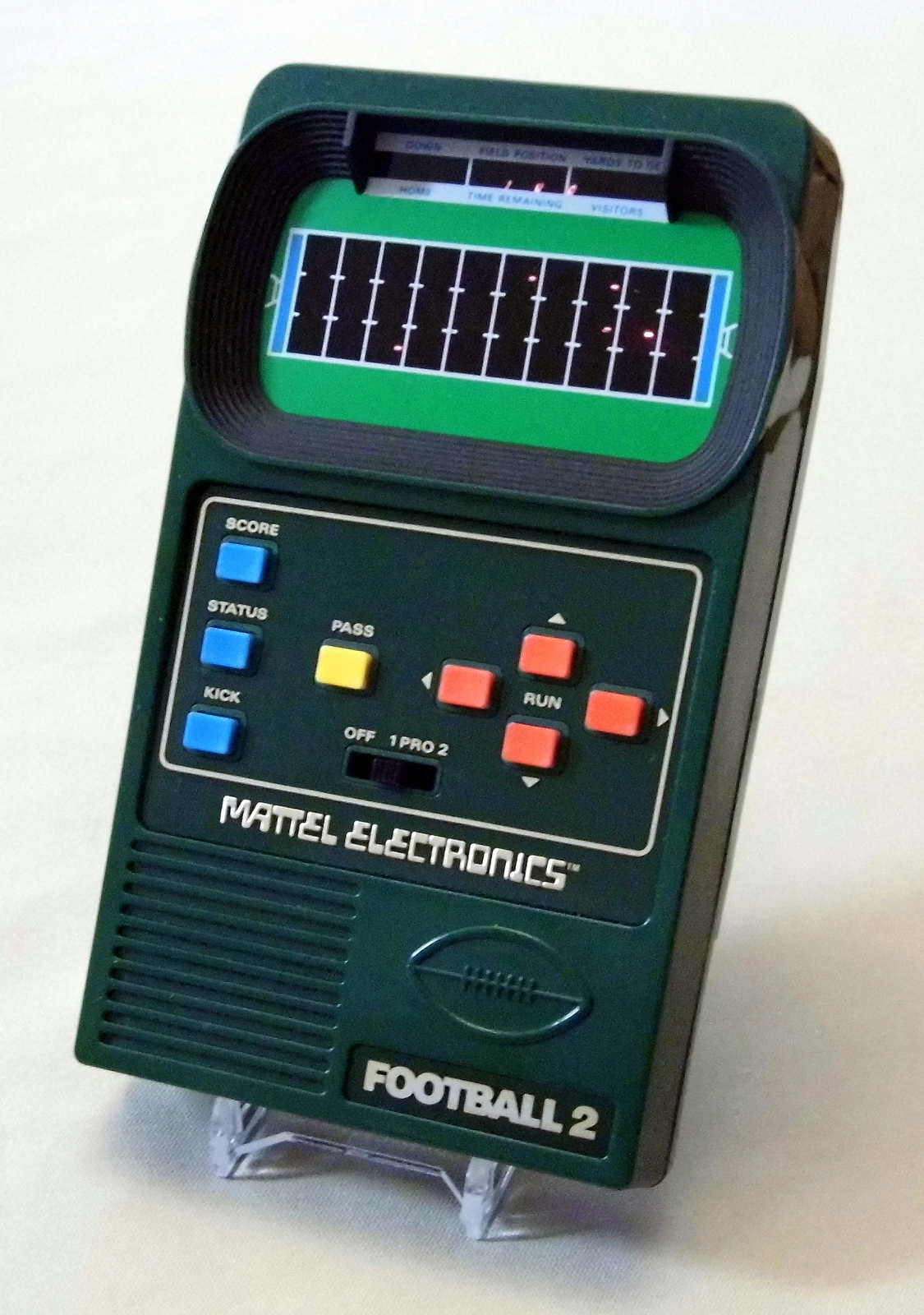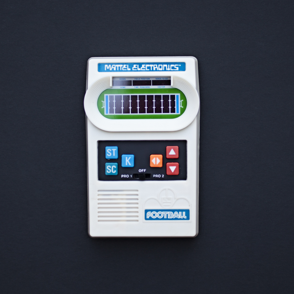 “Mattel began making handheld electronic games in 1976, beginning with a handheld version of Missile Command. Games such as Auto Race and Football soon followed, and were sold through Sears. By 1978, these games were huge hits, selling as many as 50,000 per week. Mattel eventually turned their attention to the production of the Intellivision console system, but these early handheld games continue to remain an important part of their history with electronic games.” — Museum of Play