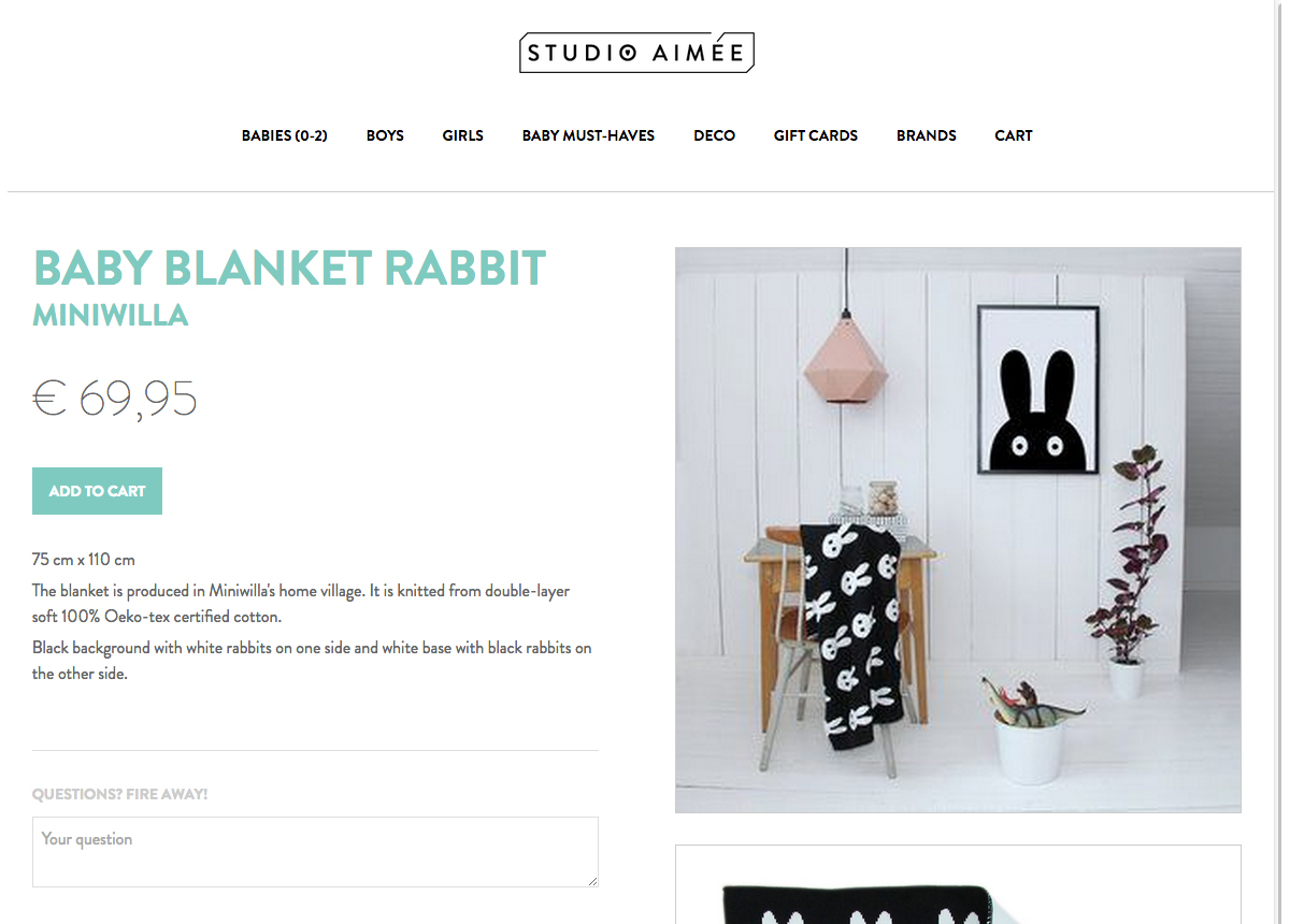Studio Aimée Contributed by Bart Rylant on Feb 20th, 2015. Artwork published in circa February 2015. Source: www.studioaimee.com De Bemanning. License: All Rights Reserved. Studio Aimée is an online concept store selling children’s clothing and deco. Source: www.studioaimee.com De Bemanning. License: All Rights Reserved. Source: www.studioaimee.com De Bemanning. License: All Rights Reserved. Source: www.studioaimee.com De Bemanning. License: All Rights Reserved. Typefaces More about Brandon GrotesqueGet Brandon Grotesque Formats Web (5566) Branding/Identity (8359) Topics Fashion/Apparel (1536) Kids (775) Retail/Shopping (1099) Designers/Agencies De Bemanning (1) Tagged withonline shopping (387) Artwork location Belgium (427) Essen (1) In Setssmooth (Karo Konieczna) (524)von morgen (Christoph Bohrer) (26)Fashion (De Lloyd) (37)MINIMALISTA (juana ezcurra) (10) Post a comment Name Email – will not be published Website Your response Submit Comment More Brandon Grotesque in use Vorher Nachher2013Christian ThomasContributed by Florian Hardwig Grandma Pilar’s farmc. 2016Nueve EstudioContributed by nueve estudio Verdi im Visier, Staatsoper Hamburg2013Karl AndersContributed by Florian Hardwig Sponsor More in Retail/Shopping Colmar websitec. 2024Digital BoiteContributed by Giulia Boggio Carhartt “Work In Progress” Retail Storesc. 2013Contributed by Stephen Coles Staff Pick Couteaux Ceccaldi2020Studio MetaContributed by Jan Tonellato Enjoy Old-Time Christmas Shopping at Knott’sc. 1970unknownContributed by Florian Hardwig More in Web Prototype website2025Studio BeaucoupPrototype StudioContributed by Inès Davodeau Le Fesses-tival 2020c. 2020êkhô studioContributed by êkhô studio Cyberpunk 2077 video game2020CD Project RedVladimir VilimovskyContributed by Alex Nguyen Quagga2022newkidContributed by Oudin Romain Staff Pick More Fonts In Use Hypnerotomachia Poliphili, Russian edition2012Sergei EgorovContributed by Anna Giedryś Staff Pick Village Wine labels2017Colour Club StudioContributed by Gareth Hague Staff Pick Nike Future Movement2021New StudioContributed by Pangram Pangram Staff Pick Vertical Music tape batch 01–032019Nicolas Turki DuchesnayContributed by WELTKERN® Typefaces Staff Pick