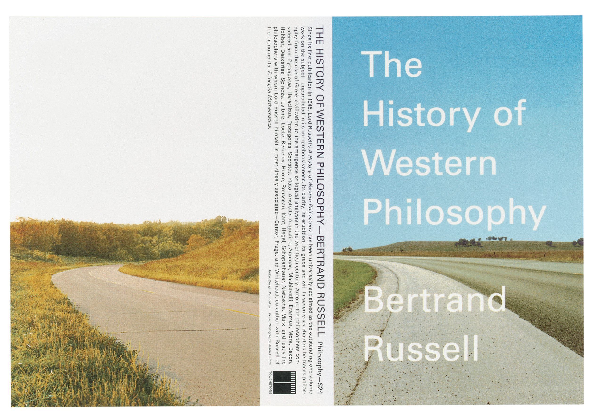 Since its first publication in 1945, Lord Russell’s The History of Western Philosophy has been universally acclaimed as the outstanding one-volume work on the subject. In 76 chapters he traces philosophy from the rise of Greek civilization to the emergence of logical analysis in the 20th century. The front and back covers use images of roads as metaphors for this dense subject. This redesign is an attempt to “update” the cover of the book, which was last done in 1972. I hope my cover lasts 30 years.