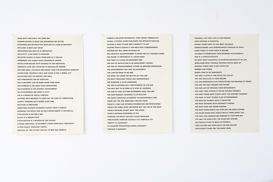 Eight posters with text from the Truisms series (1977–1979). Offset print on paper.