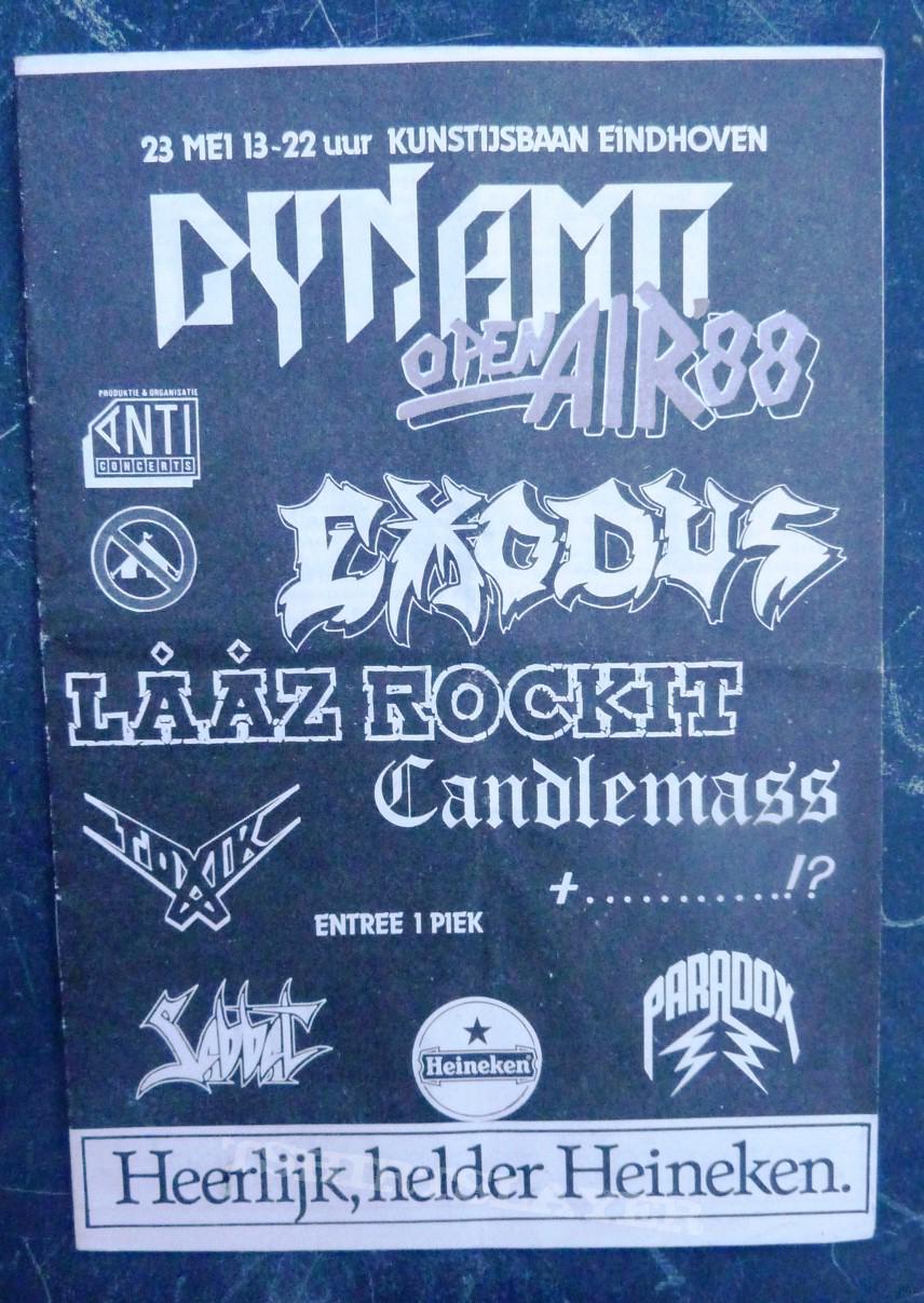 The logo appearing on the building dates back to at least 1988 (see the flyer below for the Open Air festival of ’88). The Dynamo rock club was founded in 1981 and the Open Air heavy metal festival was launched in 1986 to celebrate their fifth anniversary. It’s clear that the logo was inspired by the aesthetic of metal band logos like Iron Maiden, Metallica, and Megadeth.
