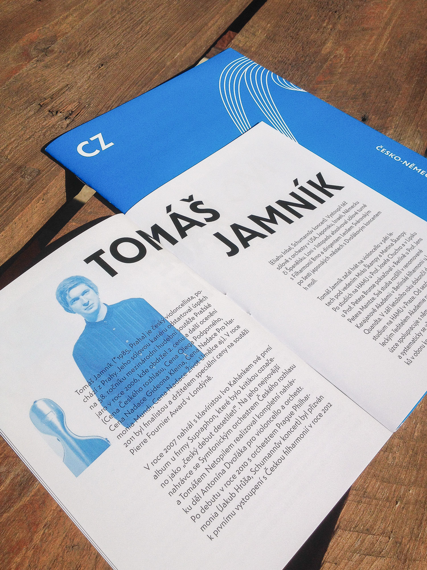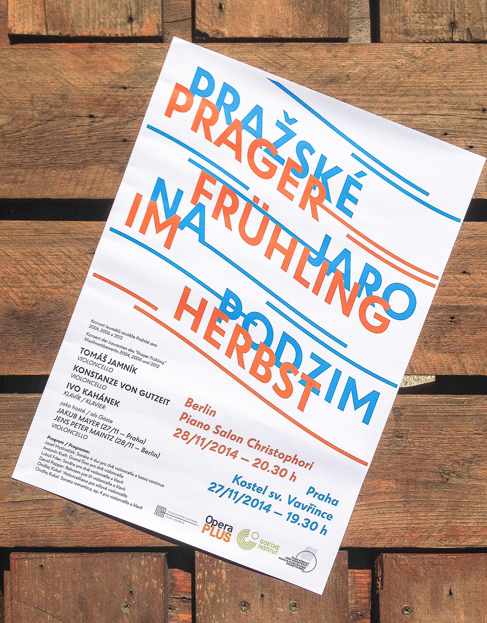 A bilingual brochure and poster for a classical music event. One side is blue and in Czech, the other is orange and in German. See Globe Grotesk on Behance.